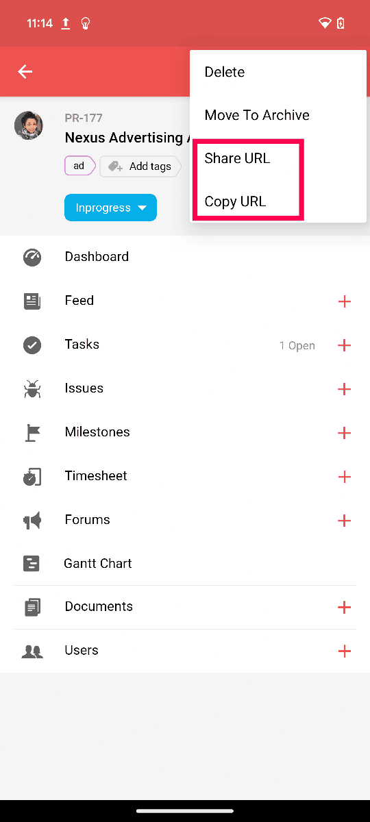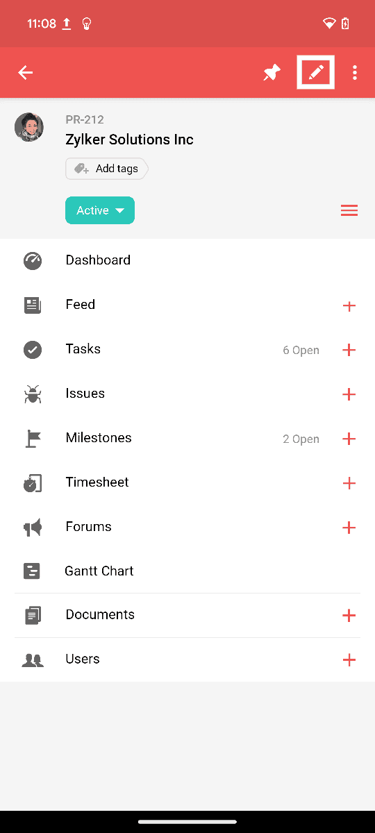 When you pin the project, the project will be added as a widget on the home screen of the mobile for easy access.