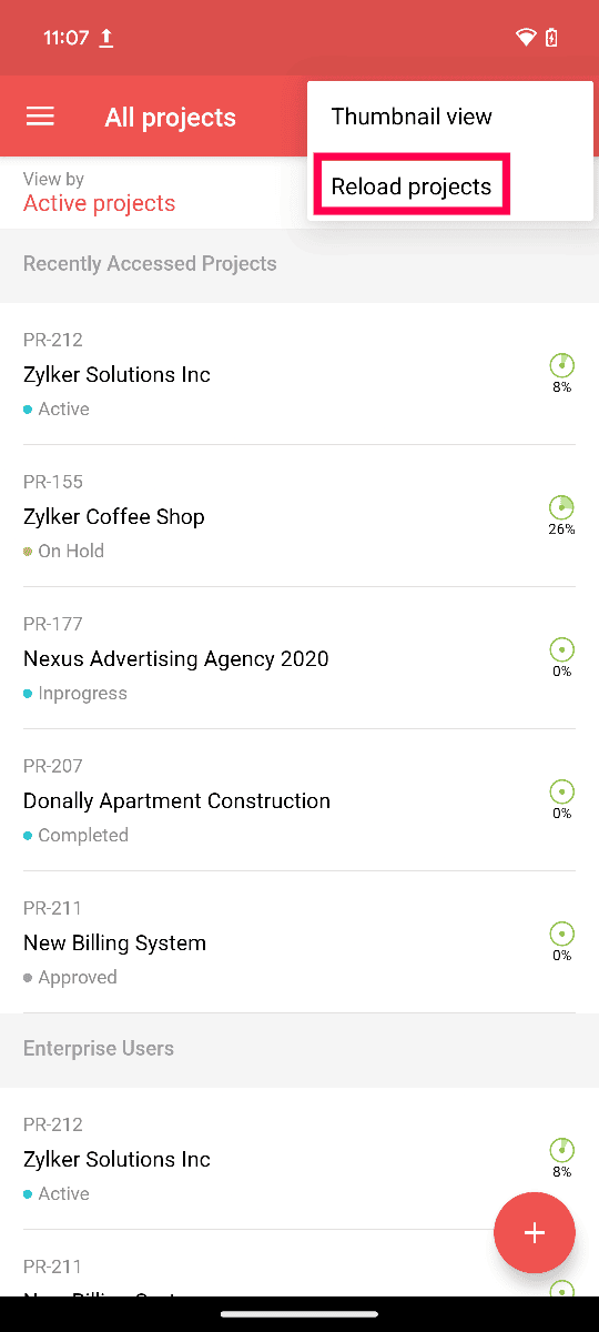 When you reload your projects, all the projects from the desktop site will be downloaded afresh to the mobile app. Before you carry out this option, ensure all your data that you have added on the mobile app is synced with the desktop site.