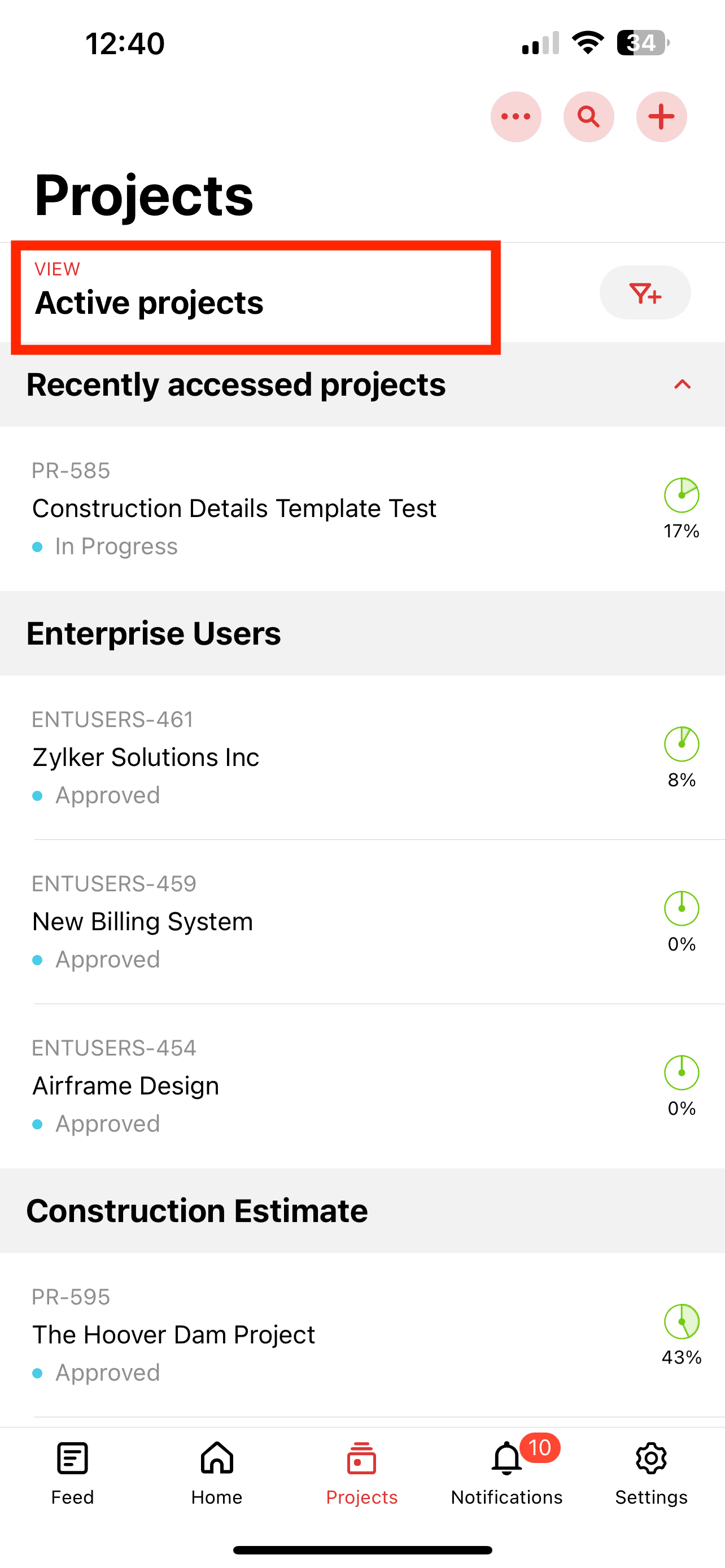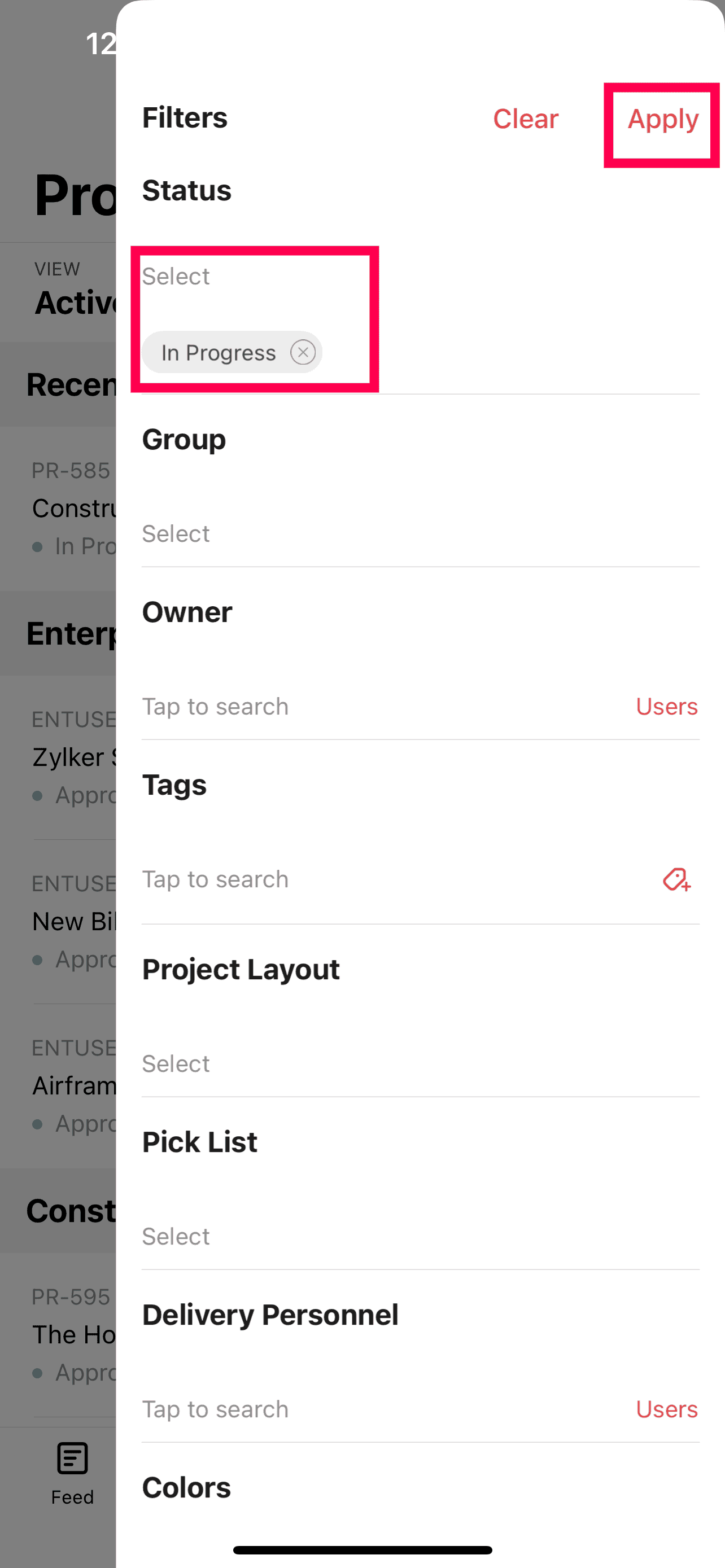 View projects based on your current requirement by using the Filter option. For instance, you can view all the projects that are in Delayed status using this option.
