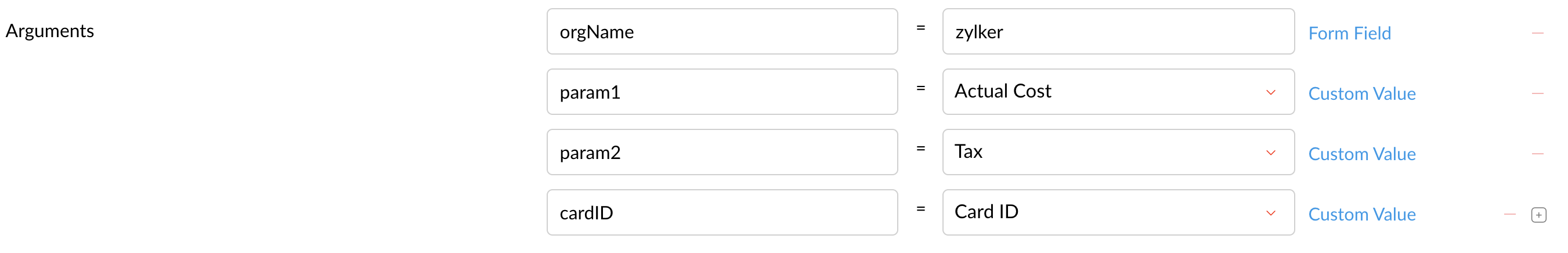 Before executing this custom function, you will have to configure the arguments, add custom field values (if required), and authorizate connections. Follow the below steps to configure the function.