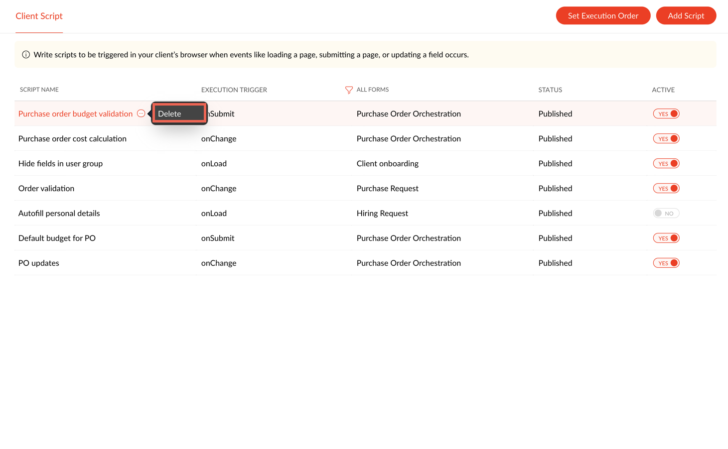 When more than one client script is created for a single form, the order in which the scripts must be executed can be predefined.