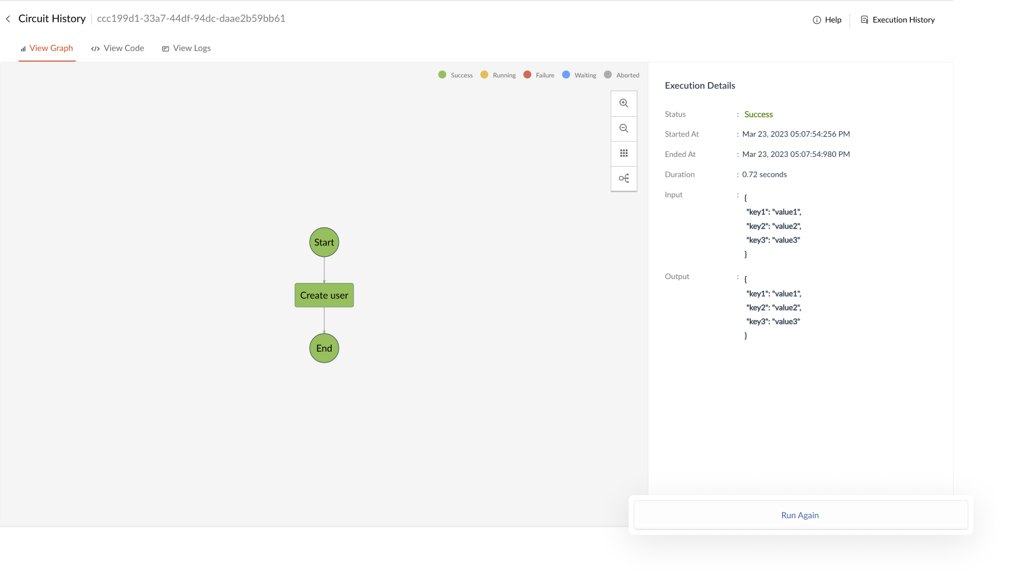 In the event of failure or data mismatch, you can repeat the execution by clicking Run Again at the right bottom of the page.