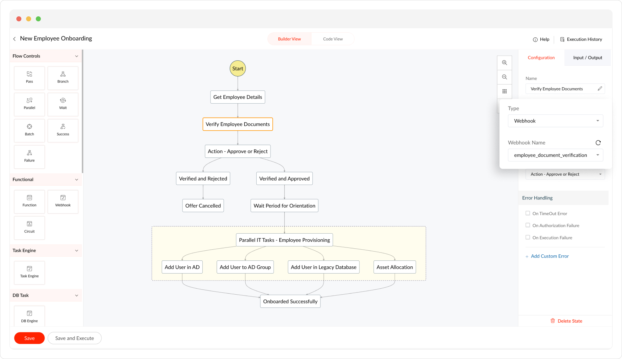 Example Use Case: When it comes to the employee onboarding process, the Webhook state can be employed for electronic document verification procedures. This is accomplished by establishing a connection between the verification service provider and configuring it to transmit verification results or updates to your webhook endpoint. By analyzing the response received, the subsequent course of action can be configured.