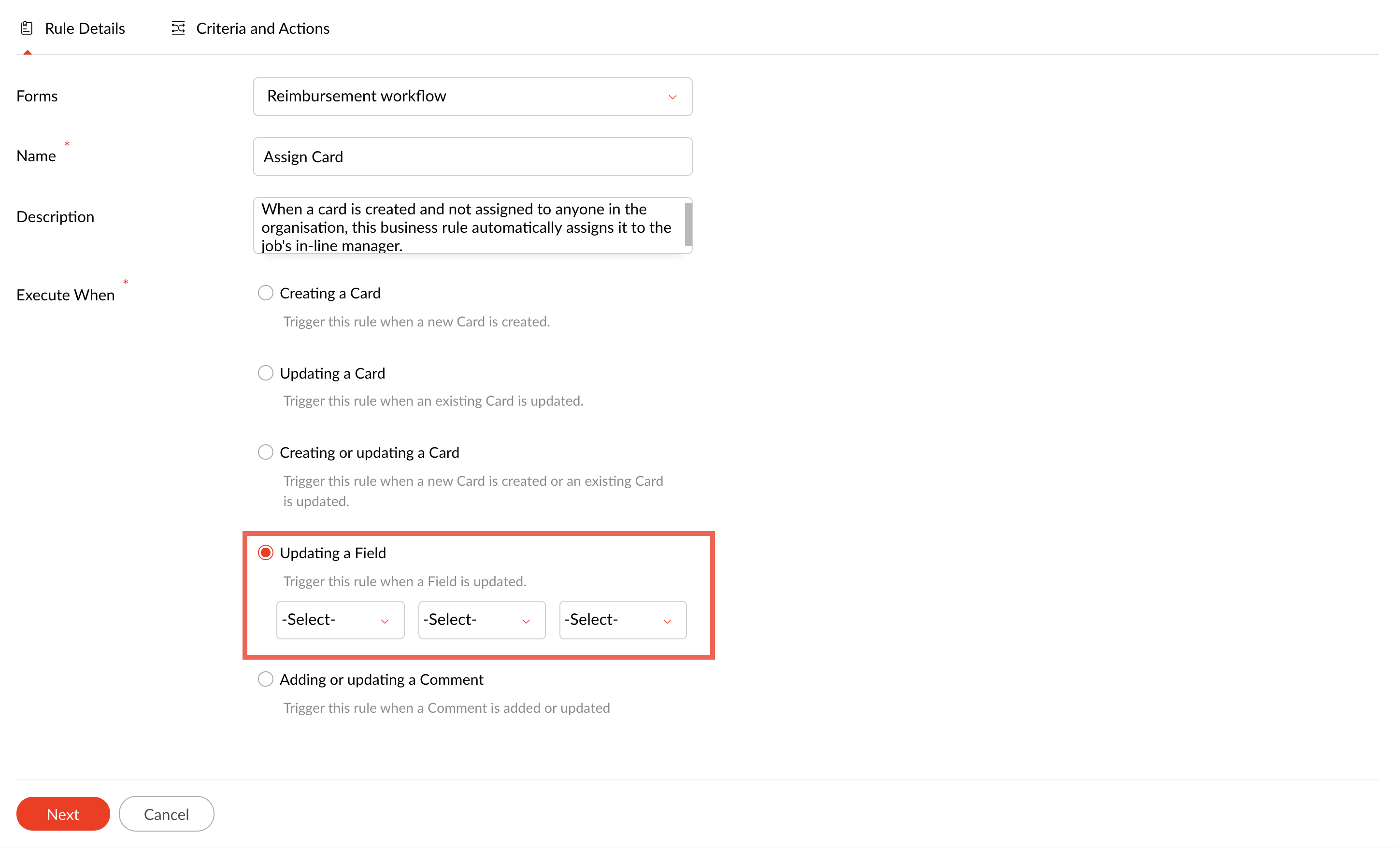 Can I trigger a business rule when two fields are updated?| FAQs | Qntrl