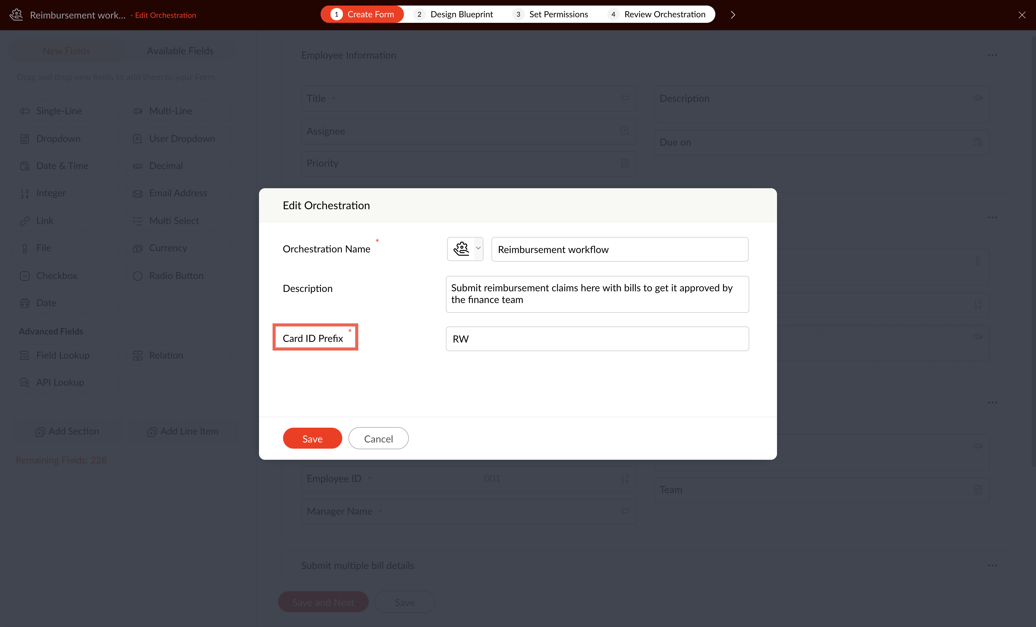 4. In the  Edit Orchestration  pop-up, update the  Card ID Prefix .