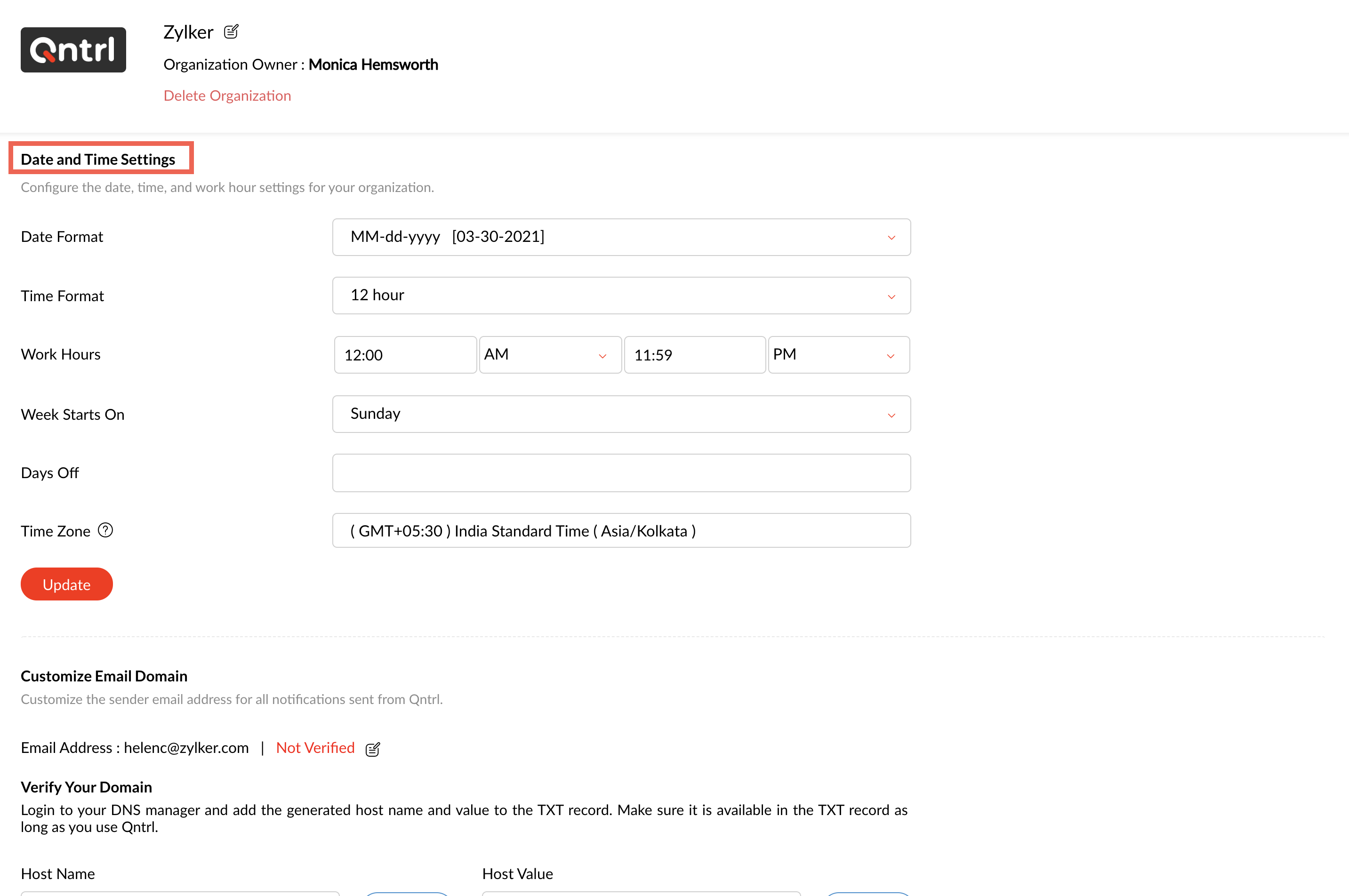 Yes, you can change the date format and configure working hours (business hours) for the organization by setting the date and time for your organization.