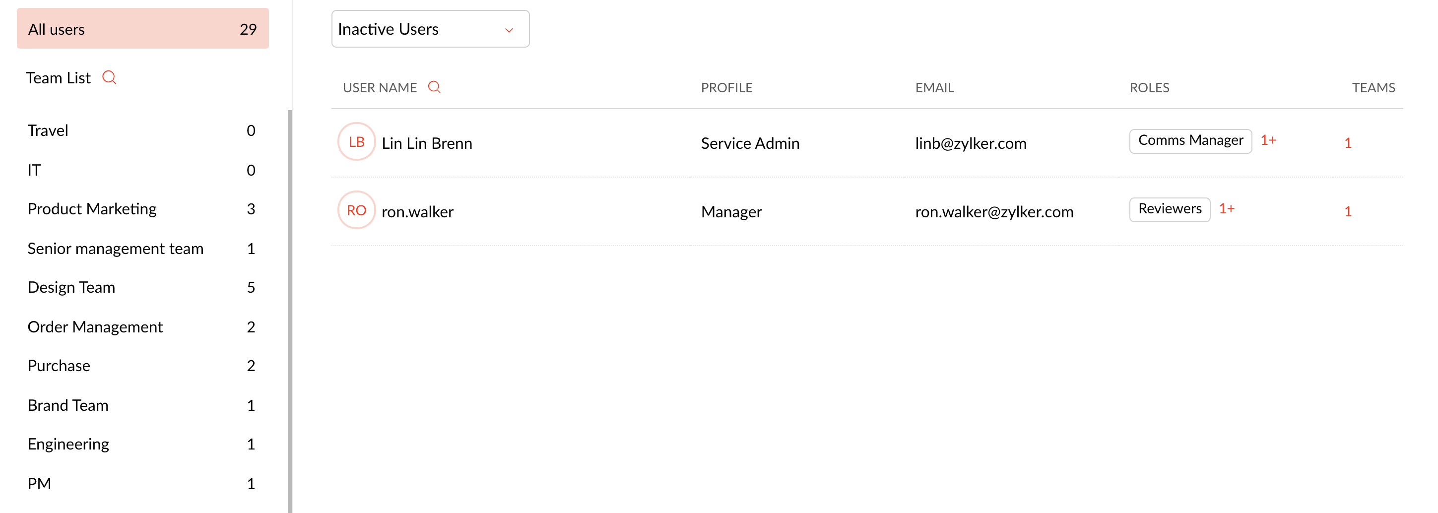 The deactivated users in your organization are listed as inactive users in Qntrl .