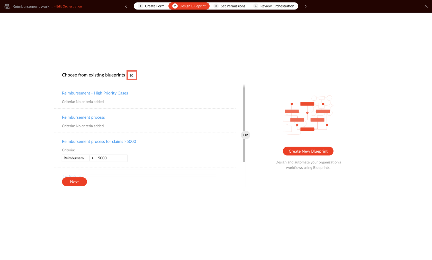 For example, if Helen wants to handle reimbursement workflow with different set of steps for a confirmed employees and interns, we can create two different blueprints and set relevant criteria in each blueprint to map cards through the right blueprint.
