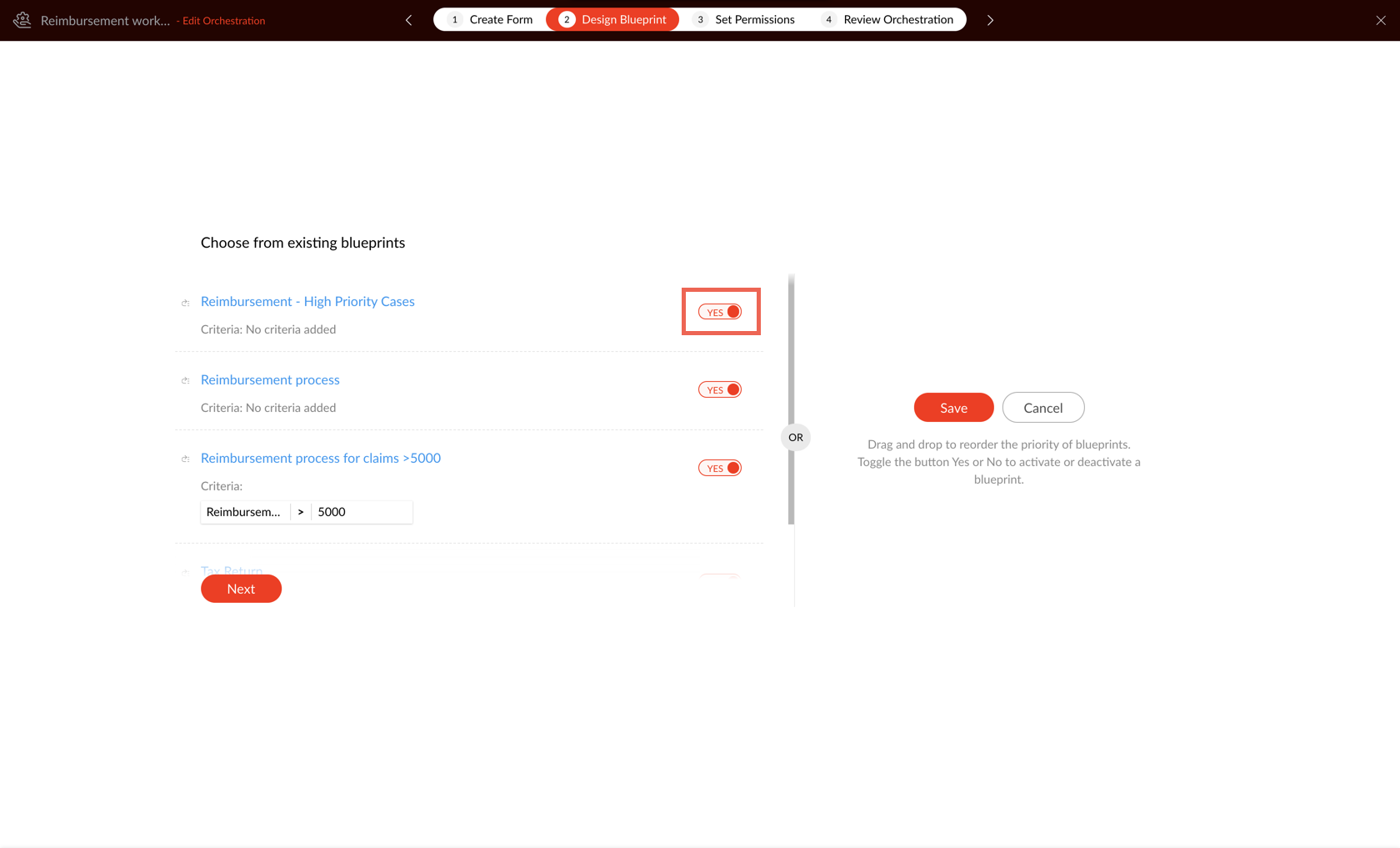 Reordering helps users to prioritize blueprints.