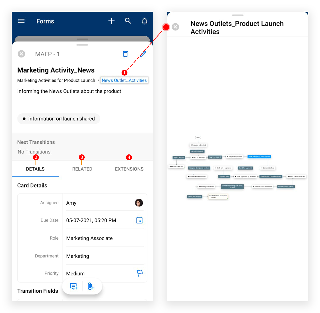 - Business rules, webhooks, custom functions, and email templates configured in the web will be triggered when related activities are performed in the mobile app.