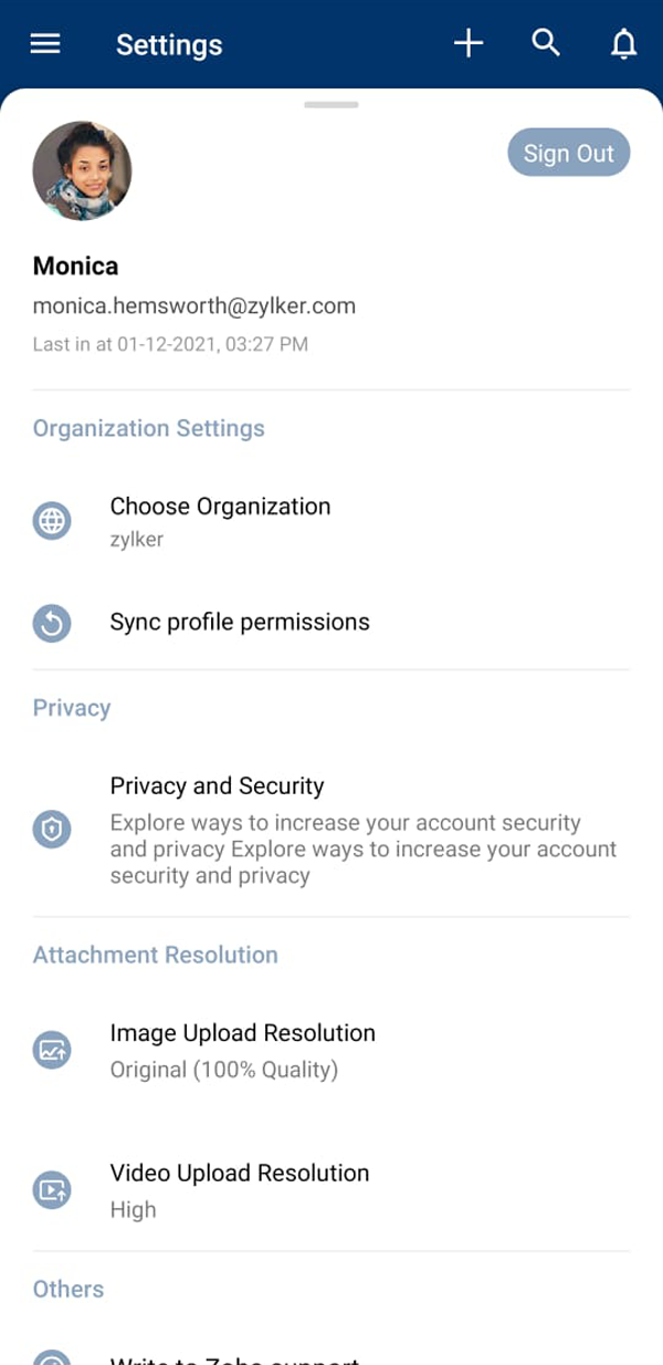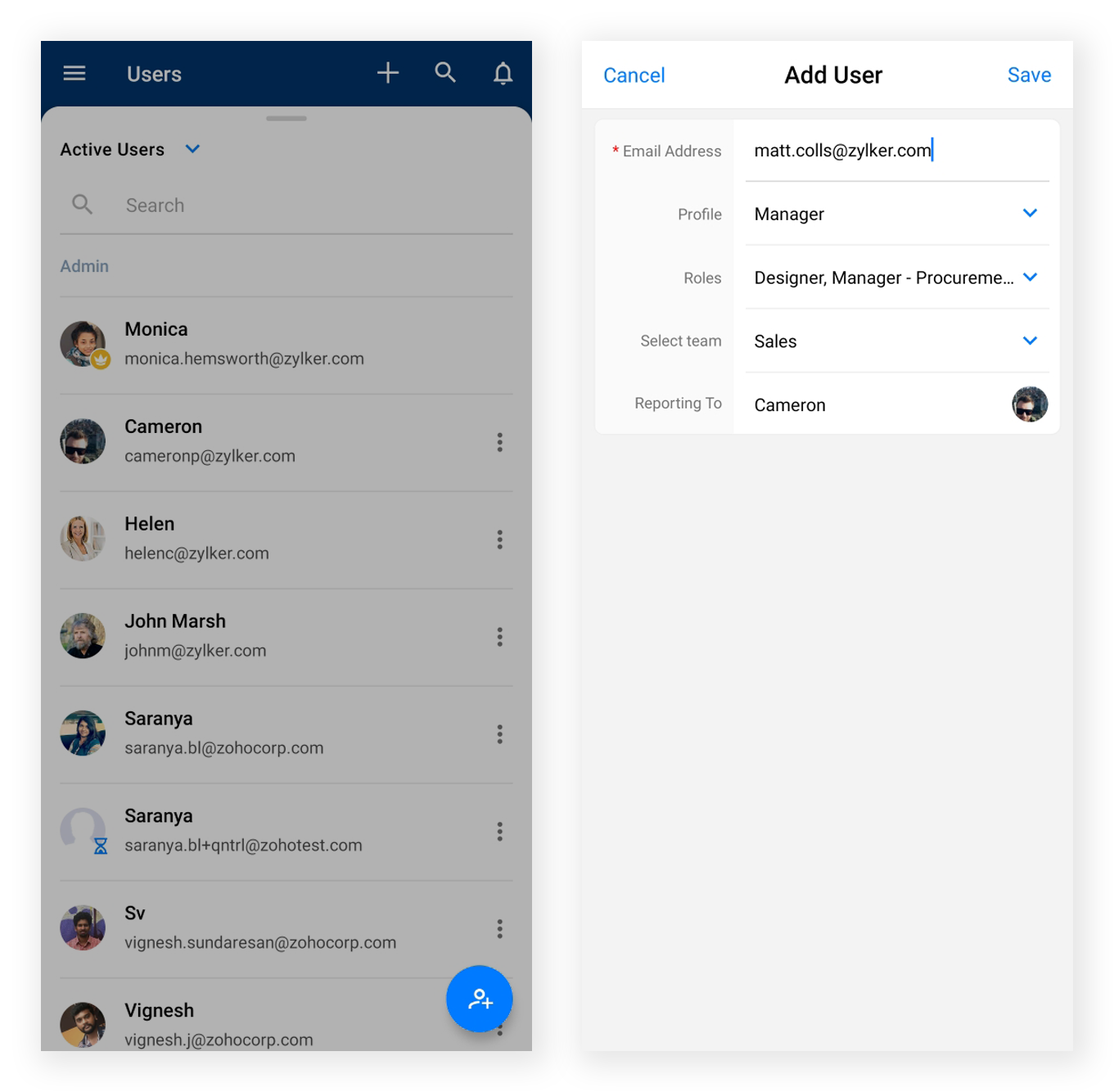 - Users, teams, user roles, and profiles configured in the web are applicable in the mobile app.