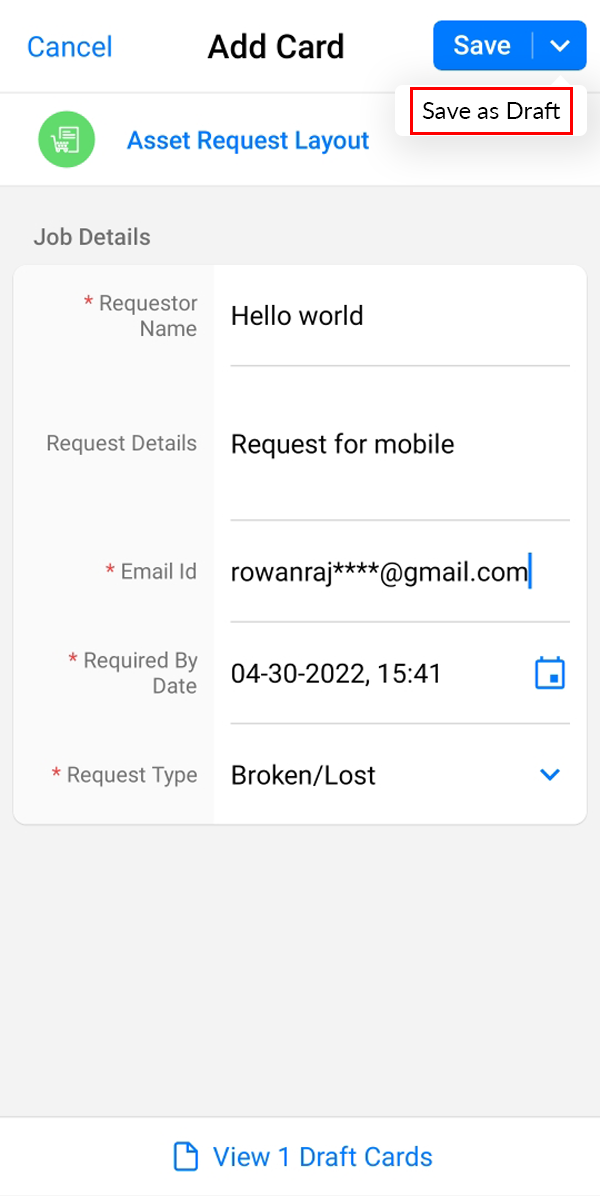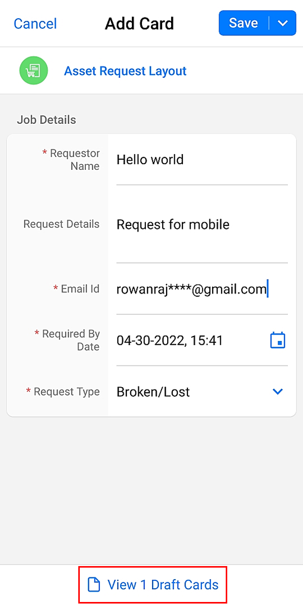 - Preview blueprint : The card's form and blueprint are displayed right below the card name. Tap the blueprint hyperlink to view the complete blueprint.