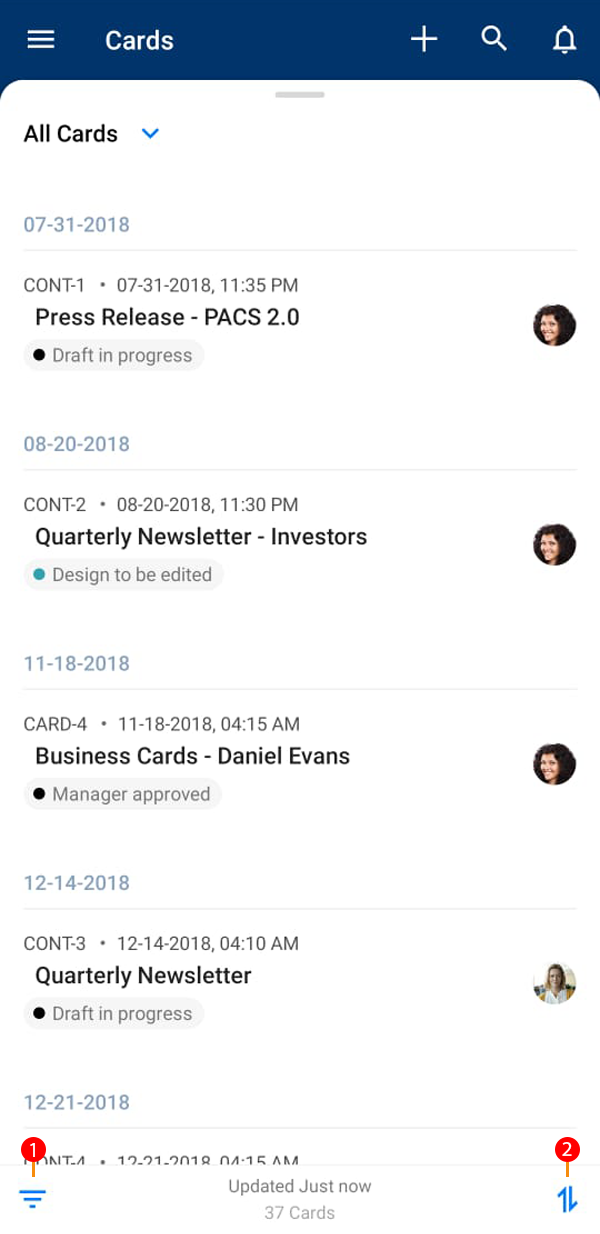 - Tap a view name. All the cards available under the chosen view is displayed.