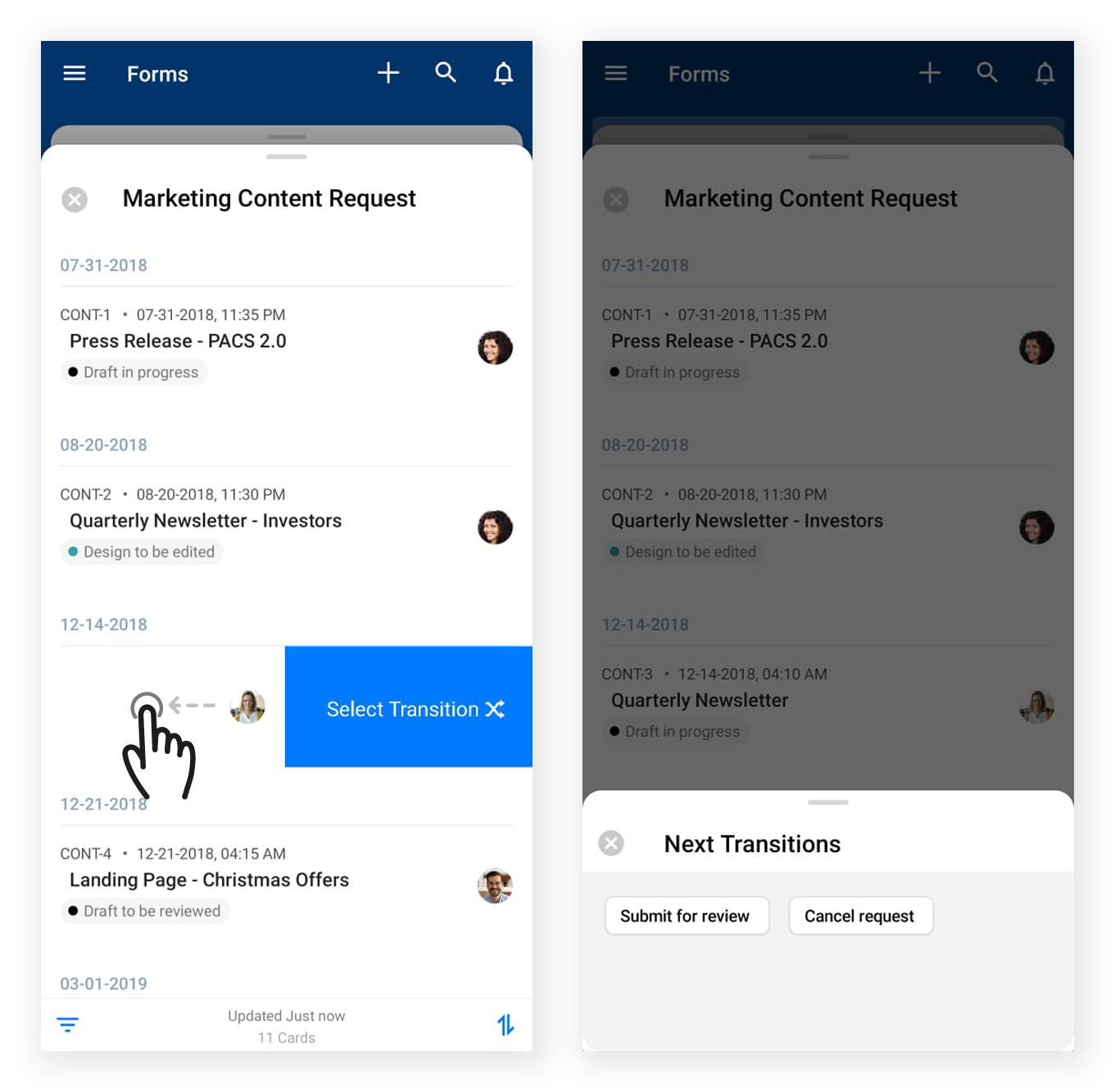 To execute a transition, just tap on it from the card details page. Alternatively, you can also perform transitions in a single swipe: