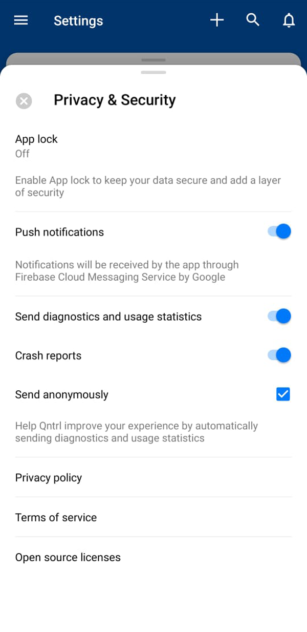 You can set up a 4-digit passcode as an additional layer of security for your data saved in the Qntrl app.