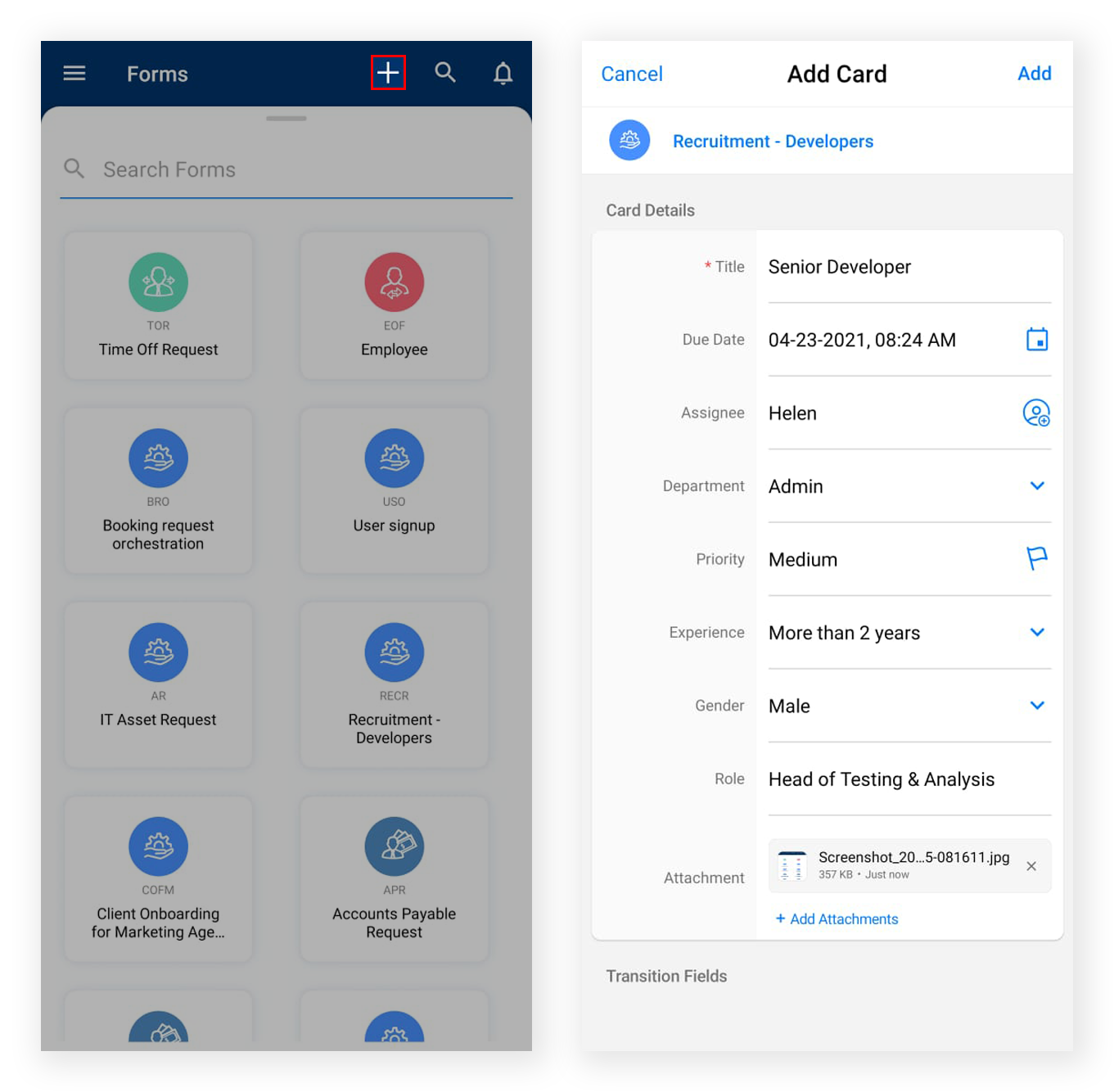 Forms are customizable digital layouts used to capture user inputs. These forms are hosted to the user while creating a card.