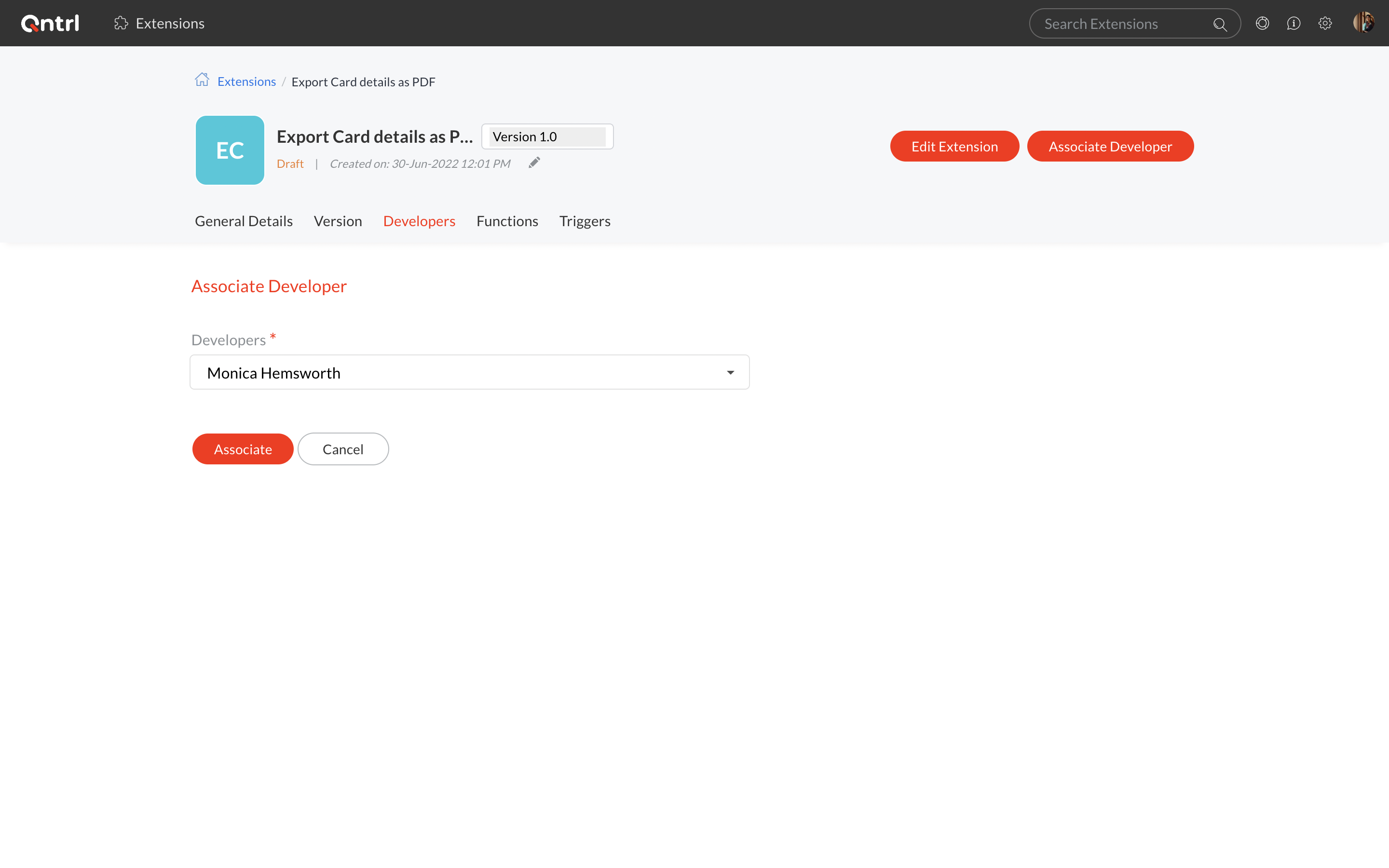Create and track extensions with the help of features like Functions, Executions, Connections, Developers, and Audit Logs. This helps create more advanced extensions and contributes to a versatile workspace in Qntrl Marketplace.