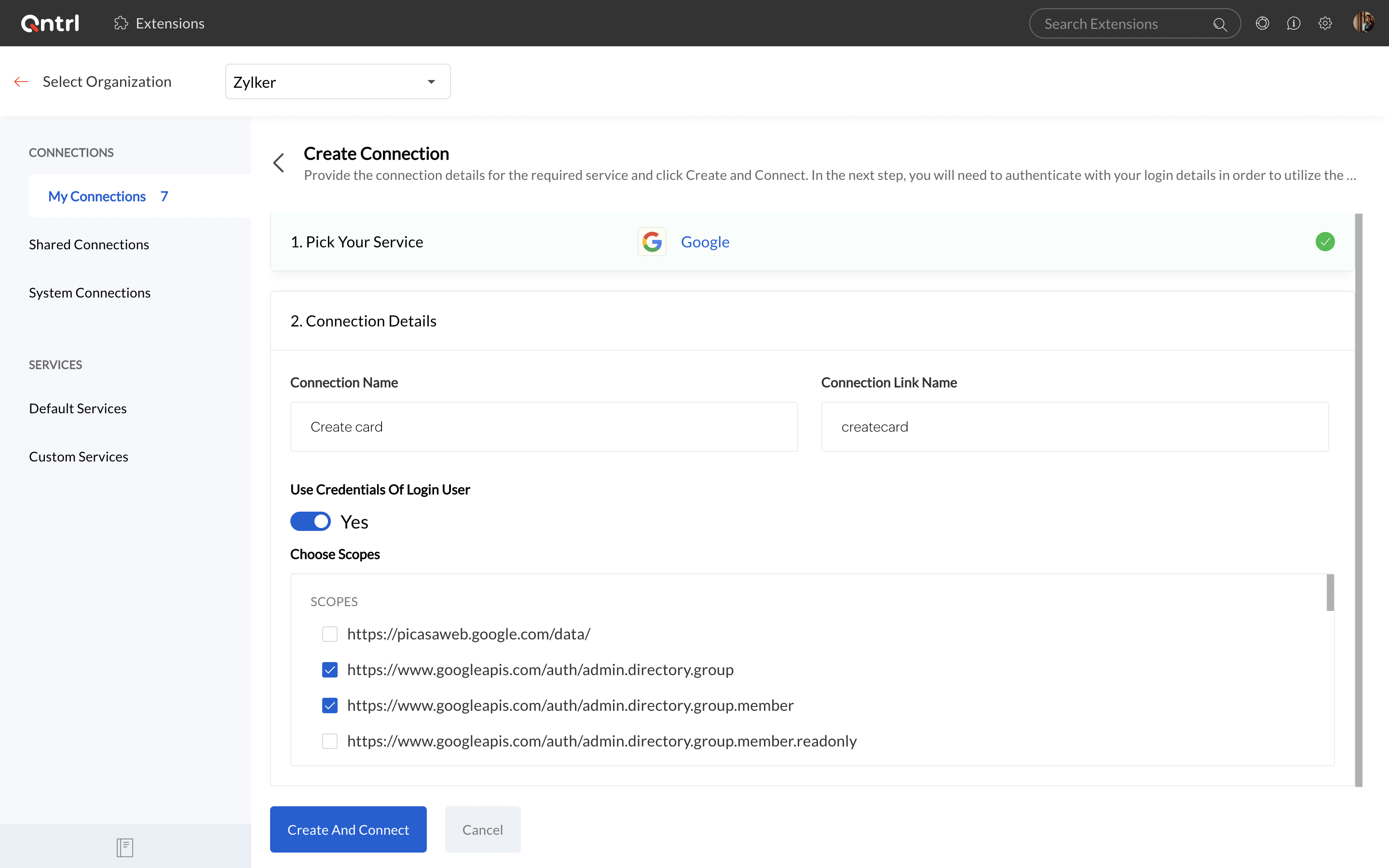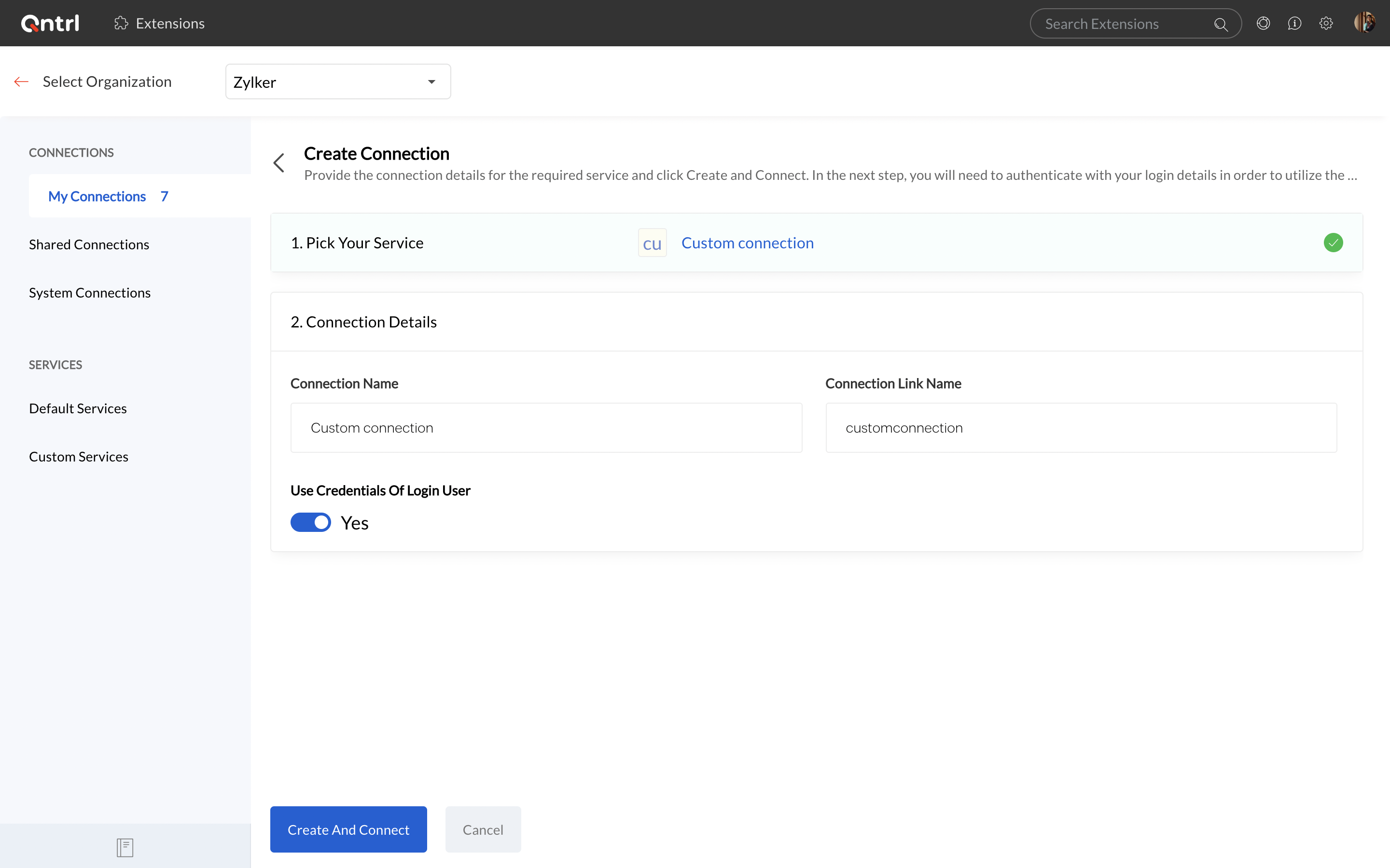 Qntrl provides a set of available services that are most frequently used by our customers. After providing the basic details, these third party applications can be integrated easily by establishing a connection.