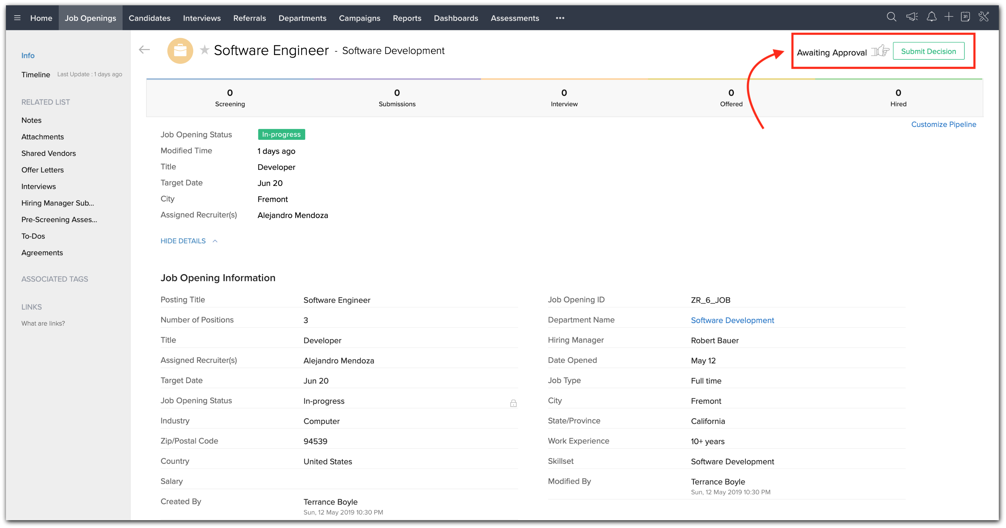 Moreover, in your recruitment database when there are loads of decisions to be approved, it becomes a tiresome task to sort through records and send them for someone’s approval.