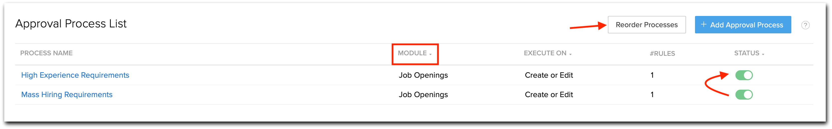 Click on the Module header and select the module whose approval processes you want to reorder.