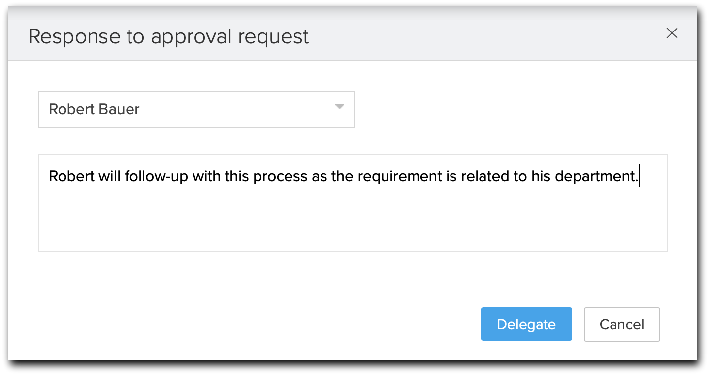 - If you click on Delegate, select a user to whom you want to transfer the record for approval and then click on Delegate.