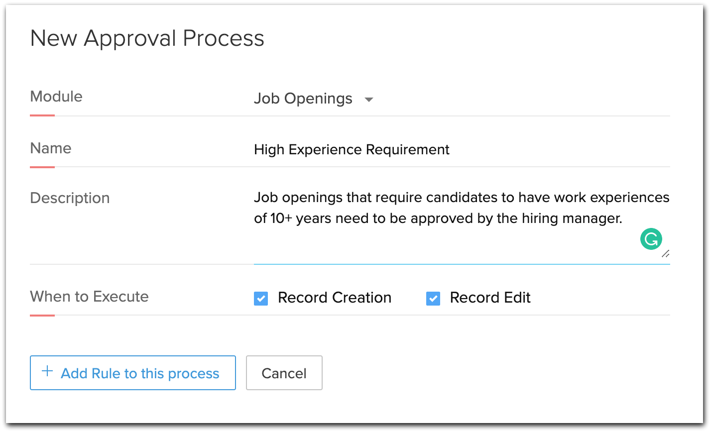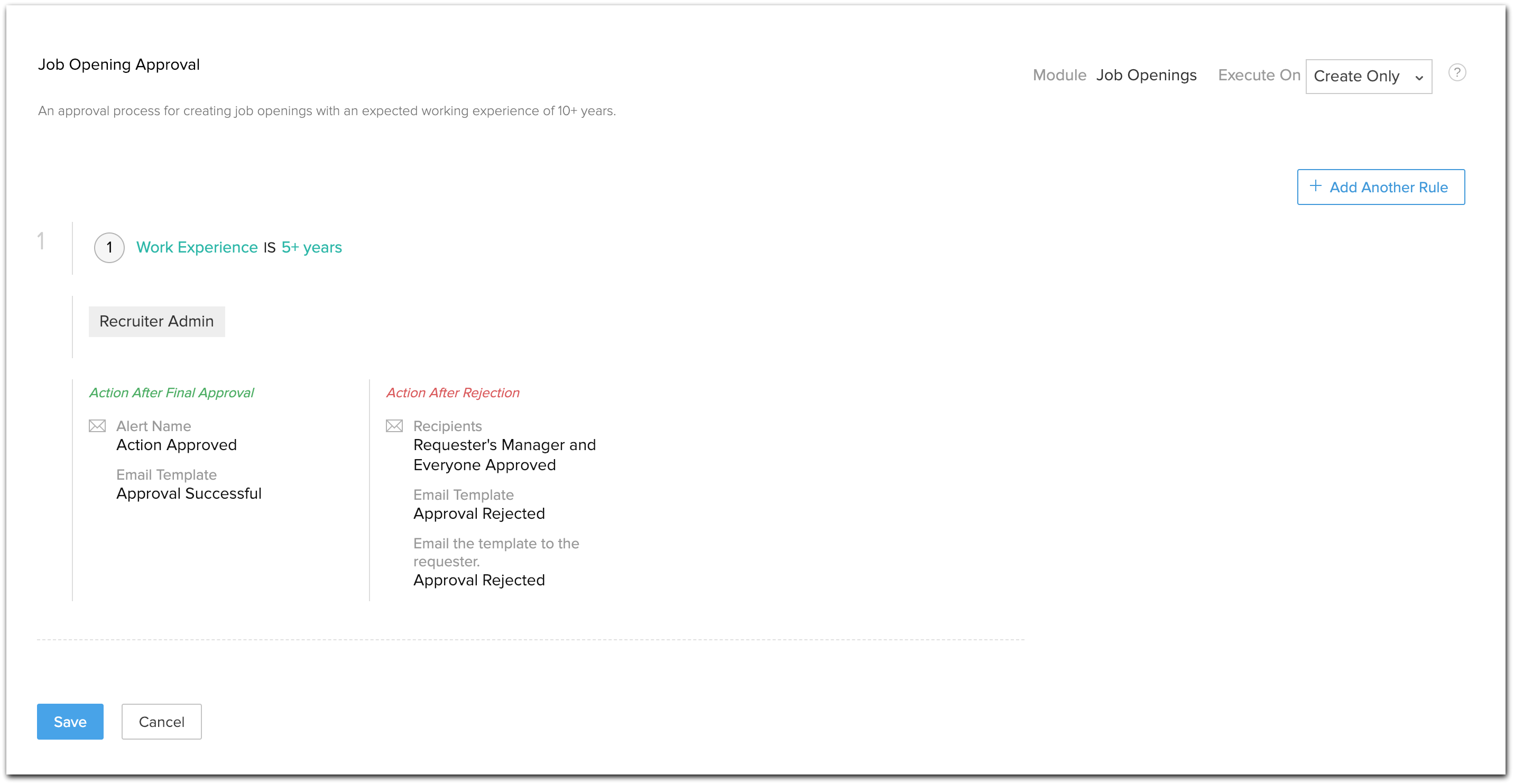 As a recruiter, you may encounter several instances in your organization’s hiring process where certain actions need the approval of one or more senior decision-makers. For instance, recruiters may need the hiring manager’s approval for creating job openings that fall under certain criteria. Handling this outside your recruitment software can be tiring as you’d have to handle certain tasks within the system and the others offline.