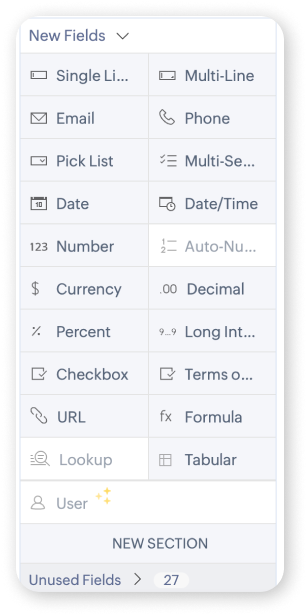 In Zoho Recruit, you can add new fields as required. These fields will be available to all the users added to your organization's Recruit account.