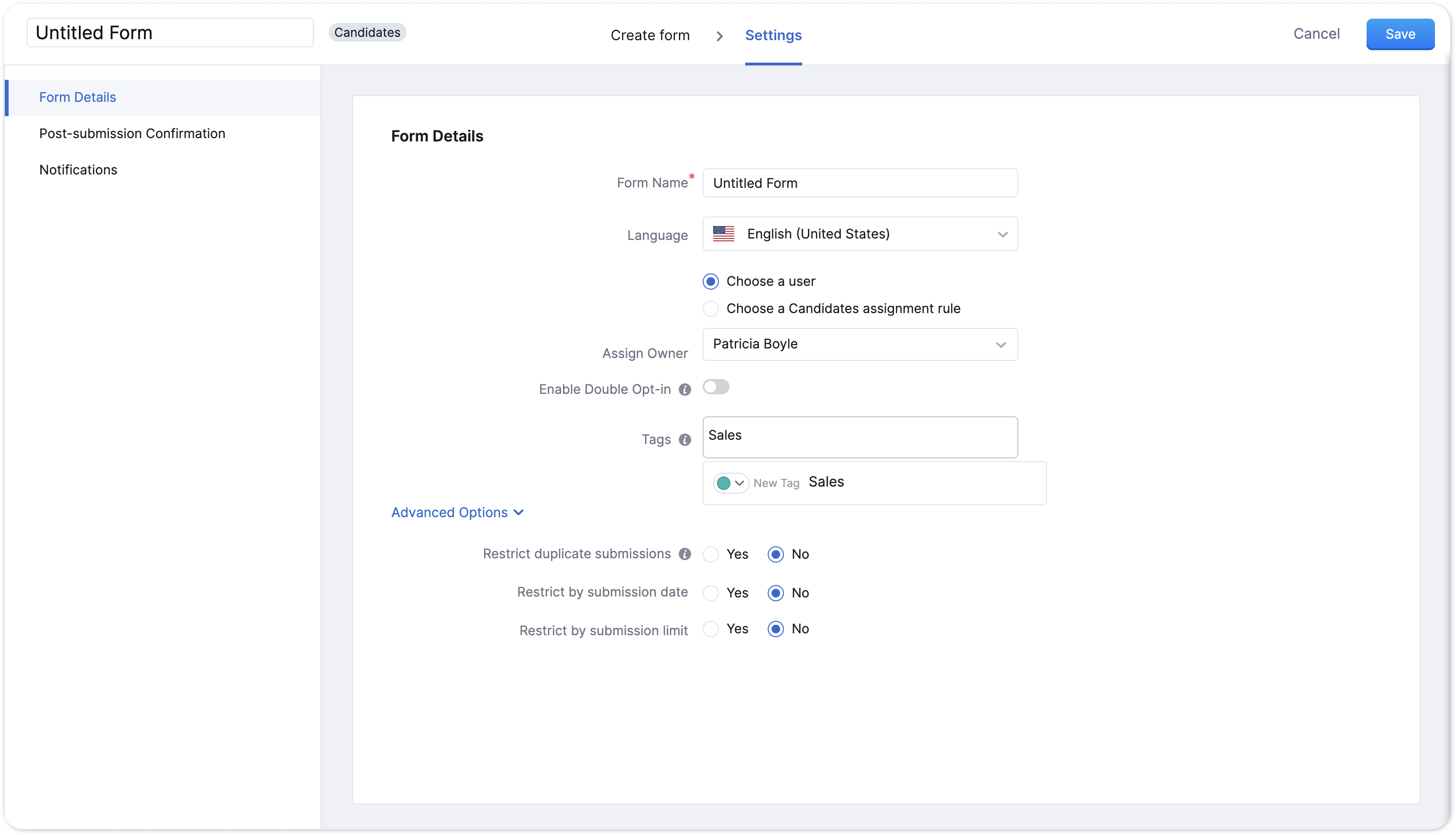 Tags in Zoho Recruit are easy to create. Tags are not just a simple category, they can be more powerful, since you can add multiple tags to a single record. You can also create tags in multiple locations in your Recruit account, if required.