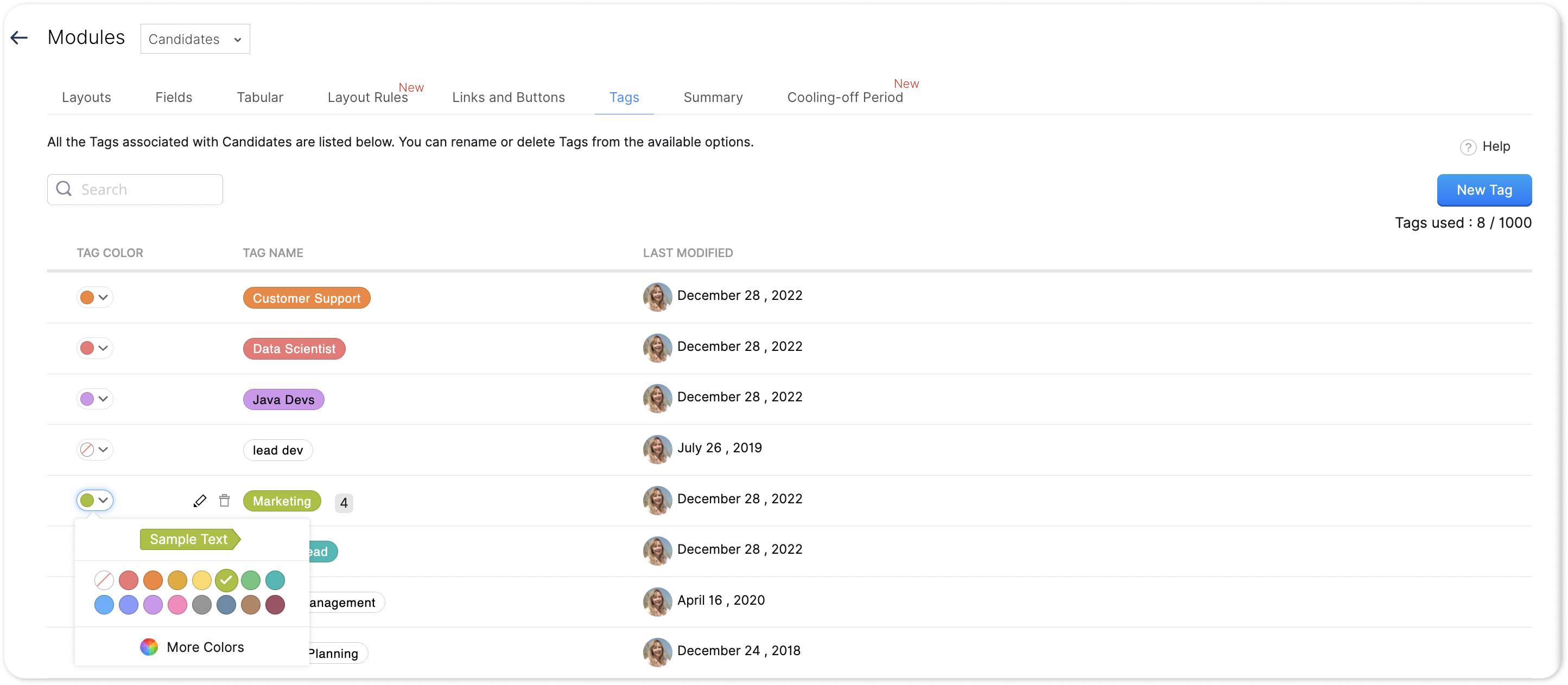 Overall, color-coded tags are a helpful way to streamline your hiring and make it easier to manage your recruitment efforts in Zoho Recruit.