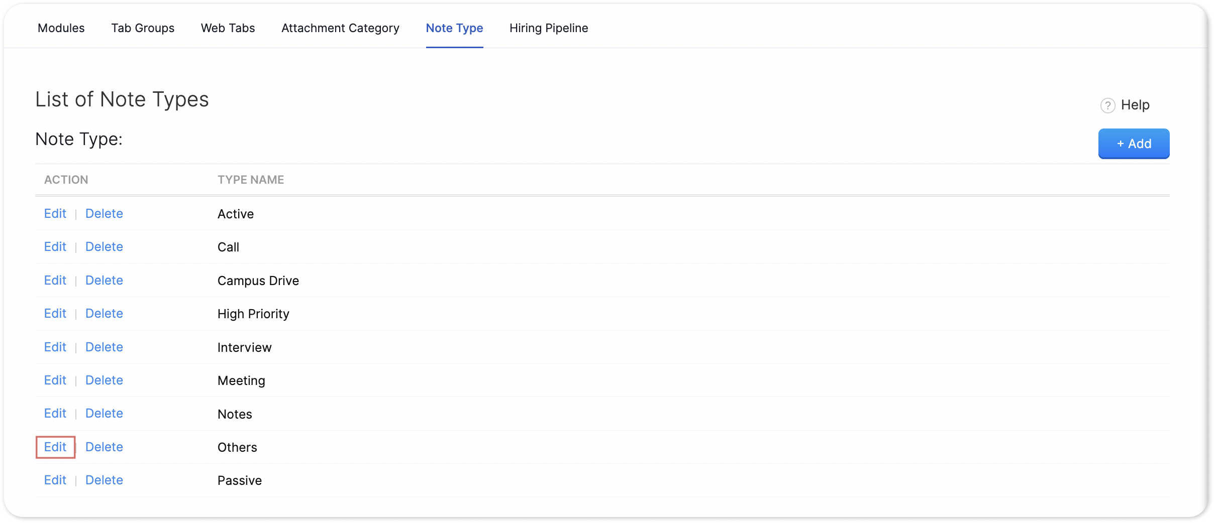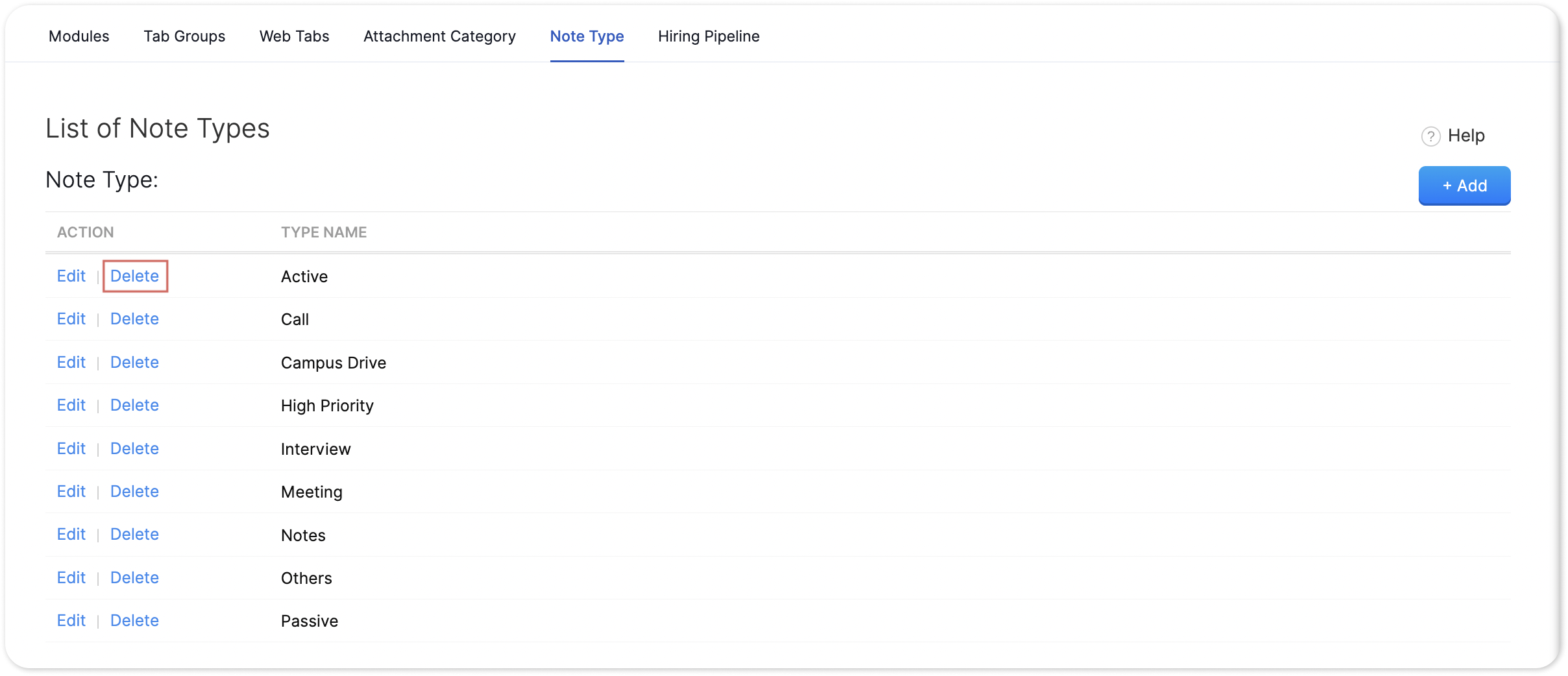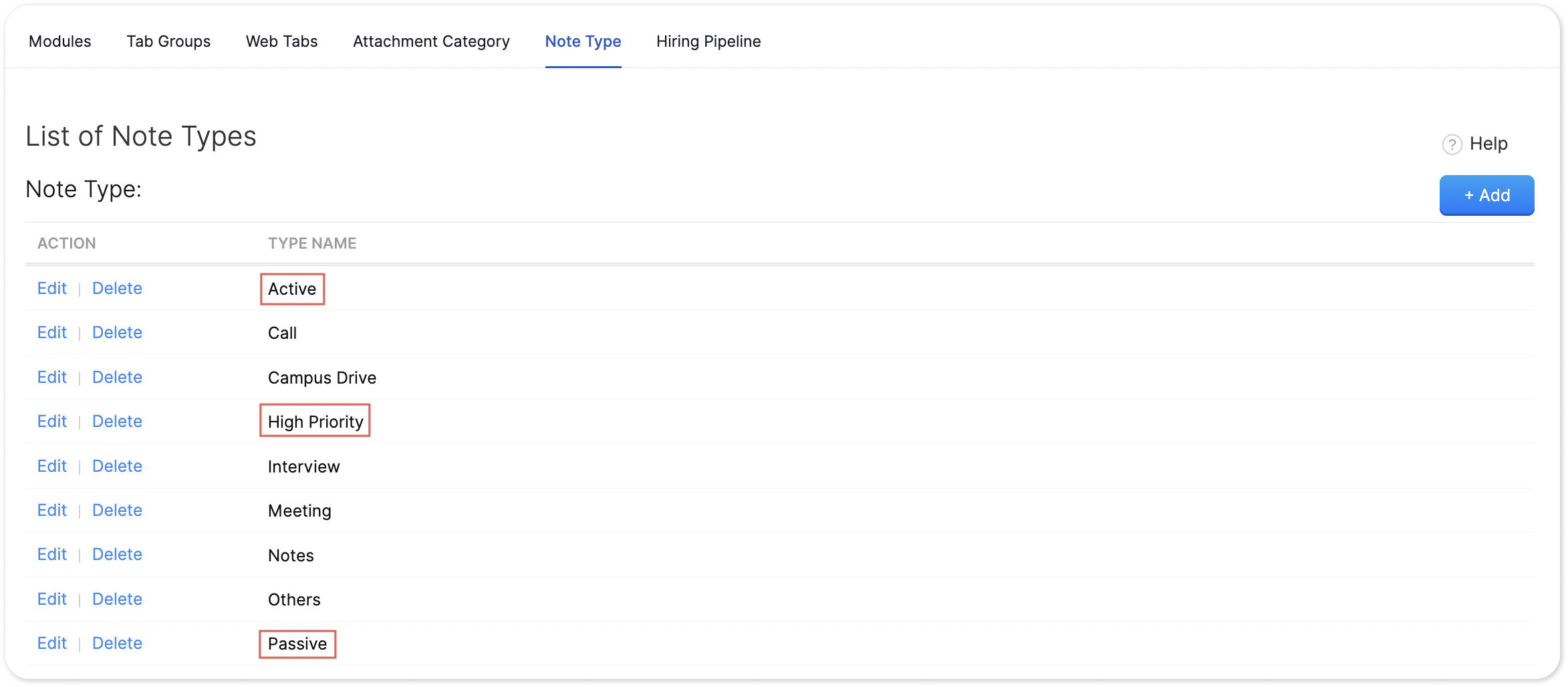 Zoho Recruit | Note Type