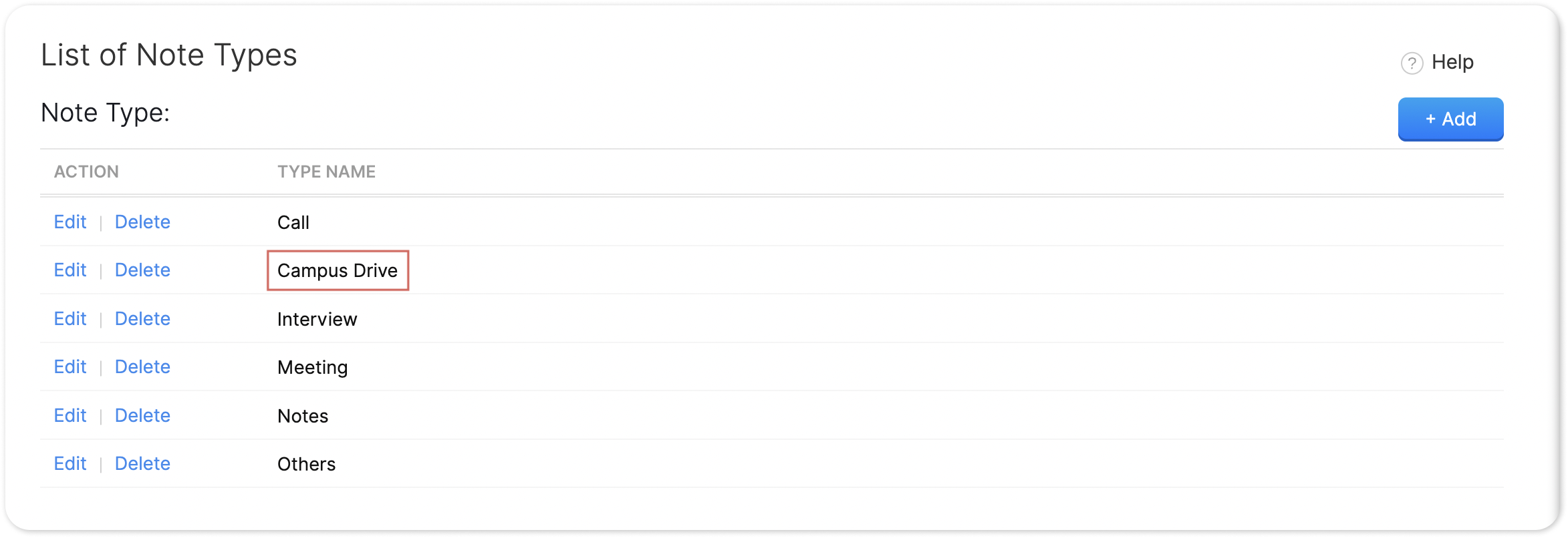 To make your notes easy to identify and access, Zoho Recruit makes use of Note Types. A "note type" refers to the category or type of note that you are creating. This will be used as the Title of the note (Eg: Call, Meeting, etc.). You can use these note types to organize your notes and to make it easier to find specific information when you need it.