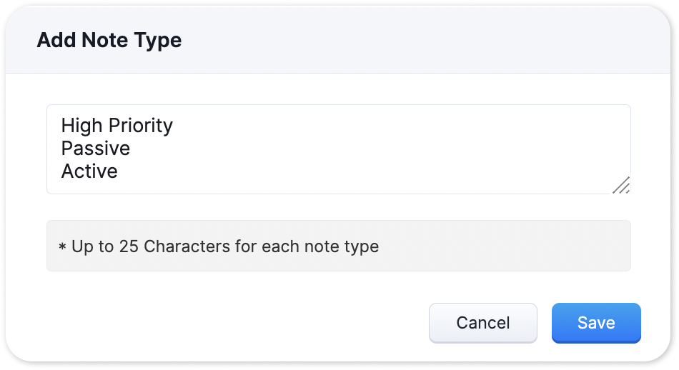 3. Enter each note type label in a separate line and click Save.