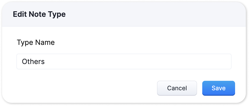 3. Enter the note type label in the text box and click Save.