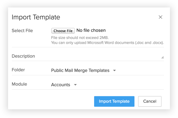 Mail merge templates can also be created in Microsoft Word and imported to Zoho Recruit. To use this function, you will need to purchase the Zoho Recruit plug-in for Microsoft Office. This feature is only supported in Internet Explorer 6 and above.