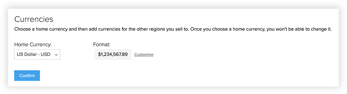 Users with an Administrator profile need to first activate this feature and then add the home currency. Please note that once activated, you cannot deactivate this Multi-Currency feature. Once activated:
