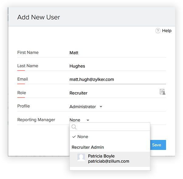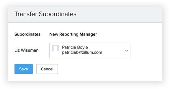 Once you define the reporting hierarchy structure for your organization, you are ready to choose reporting managers for the users. Any person who is at a superior role can be chosen as the user's reporting manager.