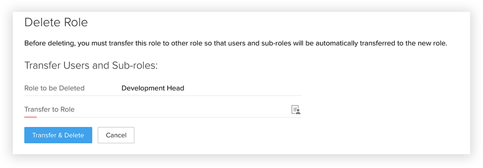 As an administrator, you can always alter the designations of the users or the roles in your organization's hierarchy structure. However, these modifications lead to several changes in the reporting hierarchy too. In the following examples, you will learn how to change the reporting hierarchy based on the role modifications.