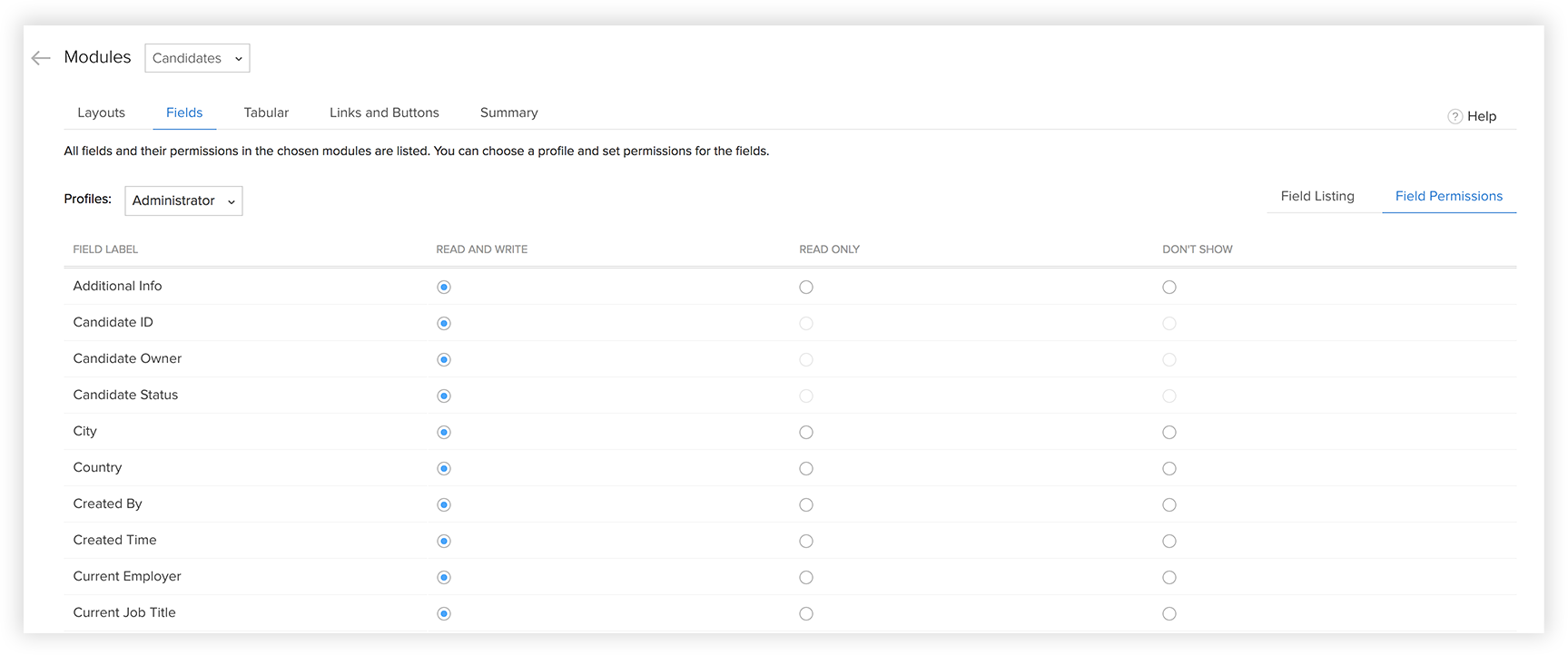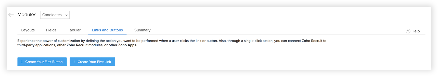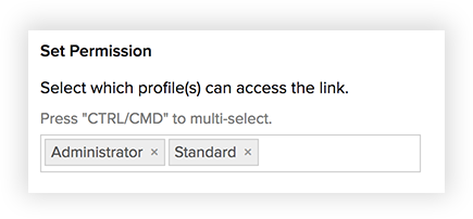 After the custom links are created, users who have 'Customize Zoho Recruit' permissions in their profile can set access permissions for the custom links. Based on these permissions, other users can use the custom links.