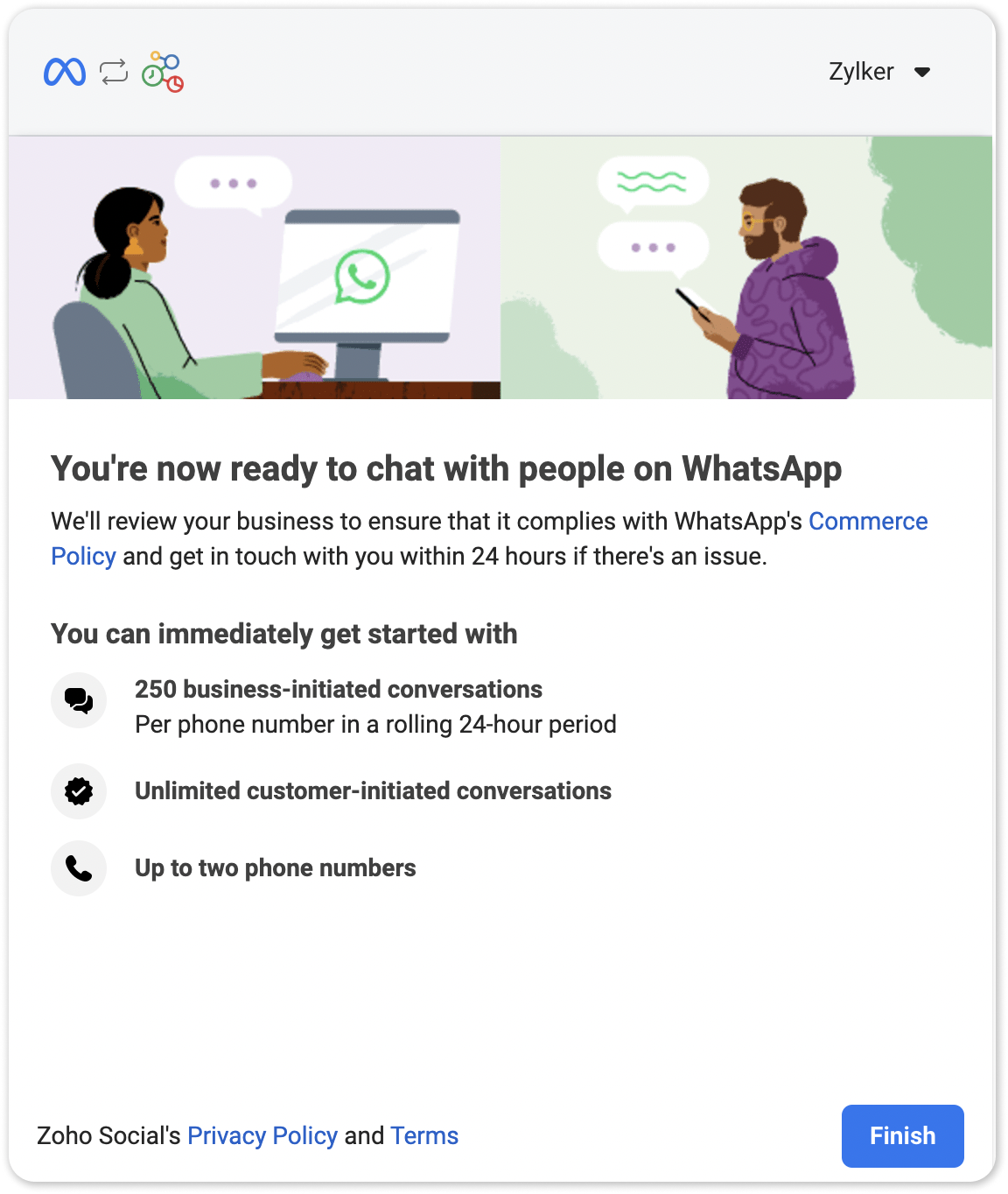 - Once your business is verified, it will be reviewed for compliance with the WhatsApp Terms of Service and WhatsApp Commerce Policy.