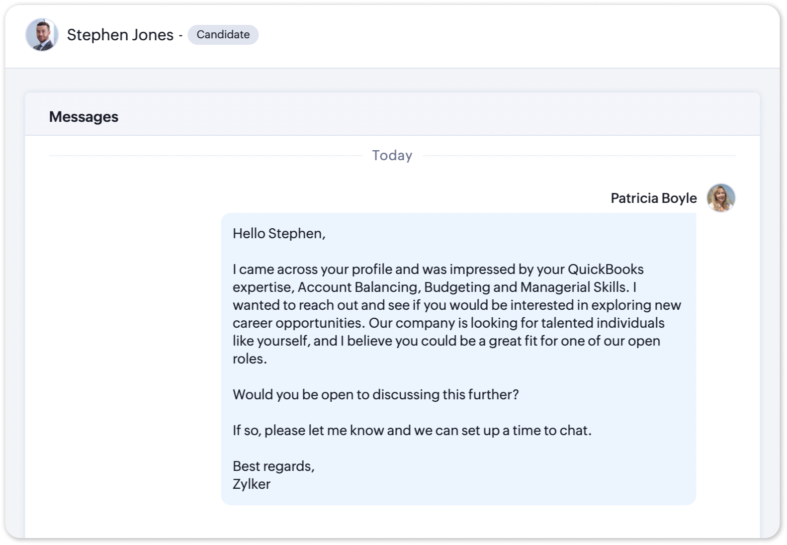 Zoho Recruit allows recruiters to engage with candidates in real-time, discussing job opportunities, scheduling interviews, and addressing queries instantly. The intuitive interface ensures that conversations are initiated swiftly, enabling recruiters to establish meaningful connections without any hassle.