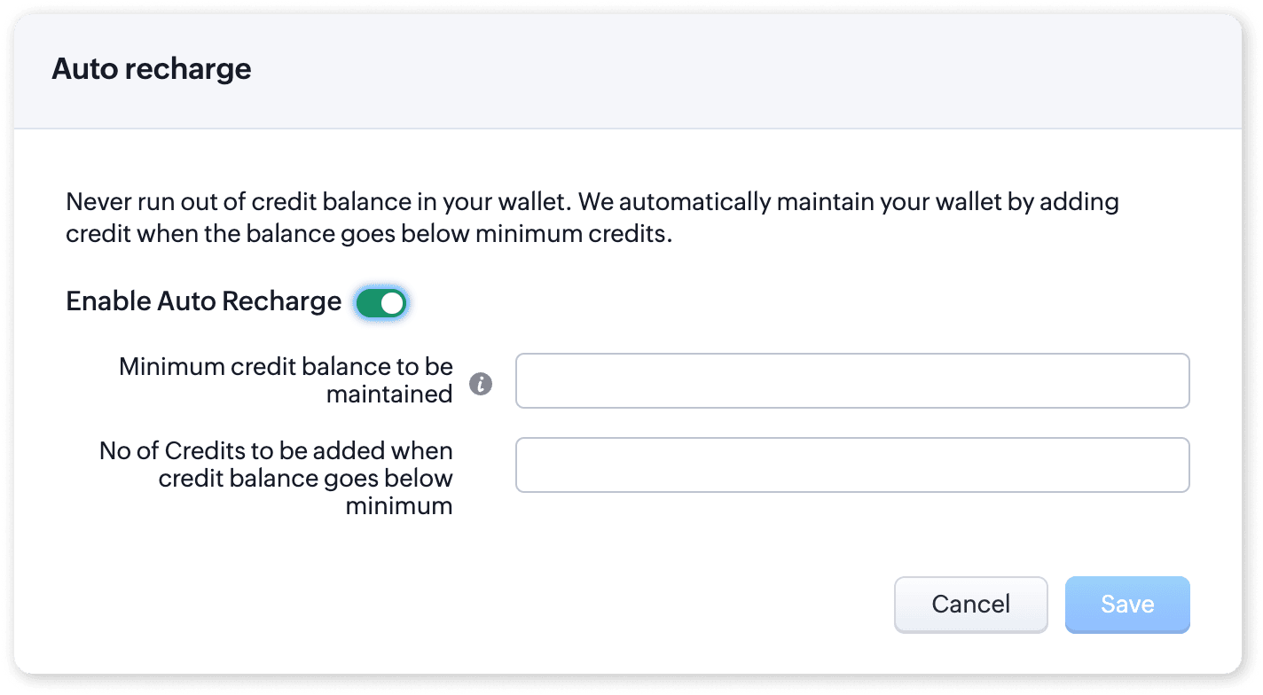 Auto-recharge ensures that your credit balance is always sufficient to maintain continuous communication without manual intervention.