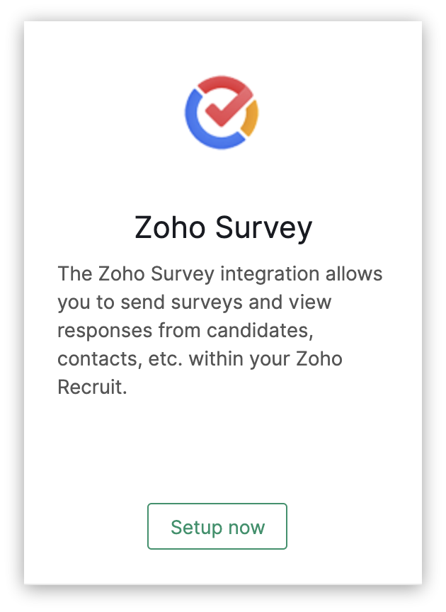 Build a Survey In order to send an email survey from Zoho Recruit, you must first create a survey using Zoho Survey. Go to https://survey.zoho.com and choose from three options - Blank Survey, Template and Existing Survey - to build your survey. See ...