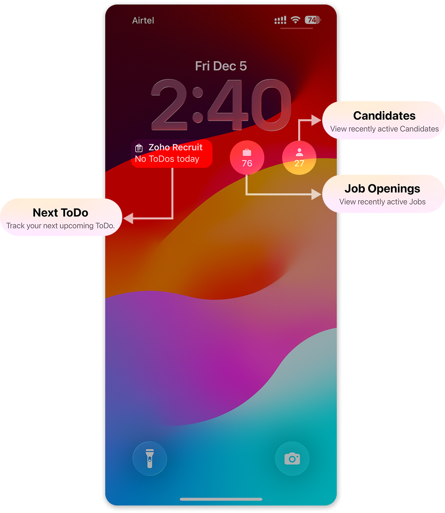 Stay informed even when the app is closed. Add Recruit widgets to your lock screen to see pending tasks or new candidates.