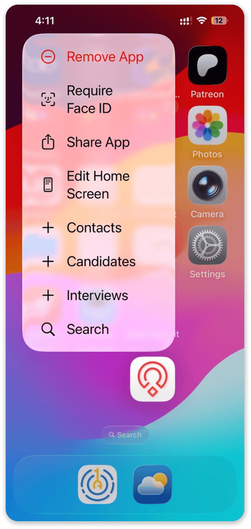 Long-press the Zoho Recruit icon to access instant actions: