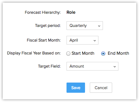 At first, a user with administrator profile has to configure the organization's forecast settings in the Zoho Recruit account. The settings include: