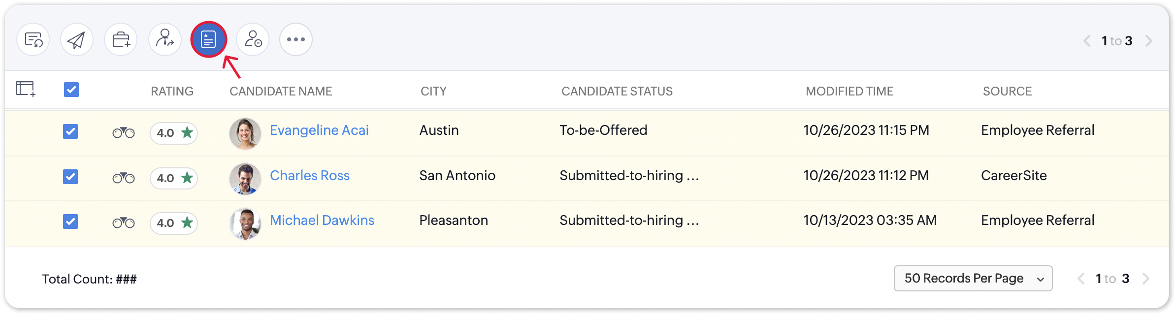 - Select the candidates you wish to send an offer letter to and click the Generate Offer Letter icon.