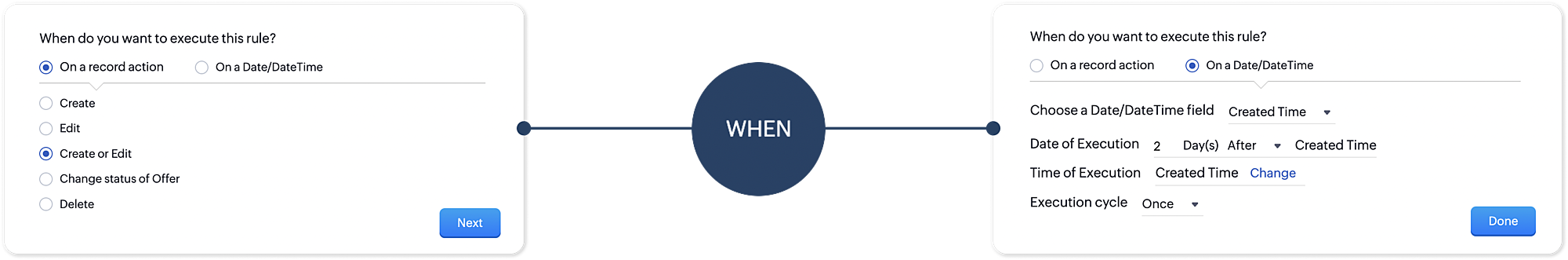 On a record action (or) On a Date / DateTime.