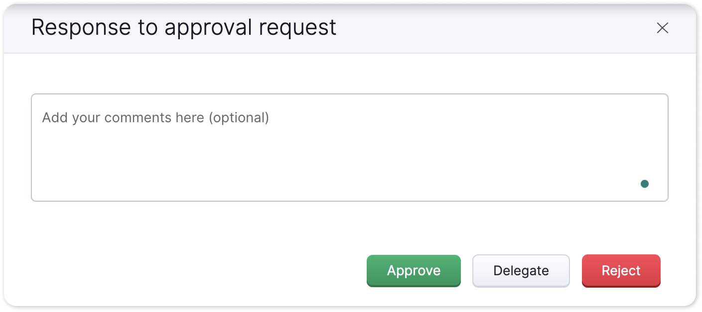 - Approve, Delegate, or Reject the offer using their respective buttons. Add comments if necessary and confirm your choice.