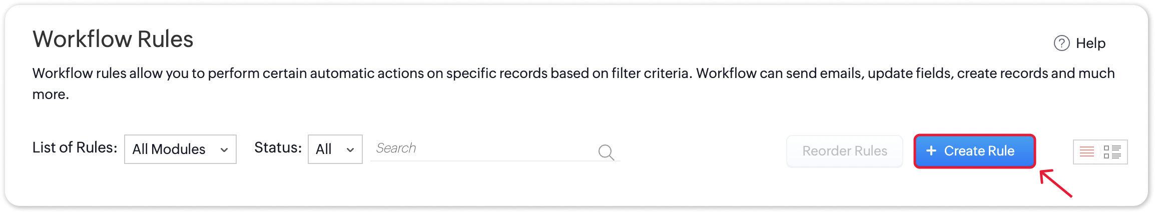 - Navigate to Setup > Automation > Workflow Rules and click Create Rule.