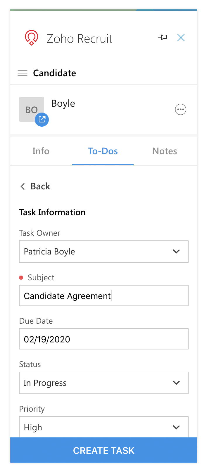 7. Add notes and to-dos for your candidates and contacts without having to go to your Recruit account